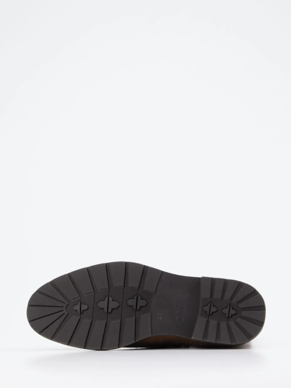 Dieser Boot von Digel zeigt sich in elegantem Braun und verbindet zeitlosen Stil mit hochwertiger Verarbeitung. Das samtige Veloursleder unterstreicht die edle Optik, während das weiche Textilfutter für ein angenehmes Fußklima sorgt. Die seitlichen Elasteinsätze im modischen Chelsea-Stil fügen sich harmonisch ins unaufgeregte Gesamtbild und verleihen dem Schuh seine selbstbewusste Souveränität. – Edles Veloursleder mit samtiger Oberfläche in warmem Braunton – Innenfutter aus polsterndem Textil für weichen Komfort und ein gutes Tragegefühl – minimalistische Gestaltung des Schaftes eröffnet zahlreiche Stylingoptionen – Digel-typische Verbindung aus Designbewusstsein und Alltagstauglichkeit Für die Pflege empfiehlt sich eine farbneutrale Veloursbürste und ein Imprägnierspray. Regelmäßige Anwendung erhält den feinen Look und schützt das Material zuverlässig vor Feuchtigkeit und Schmutz.