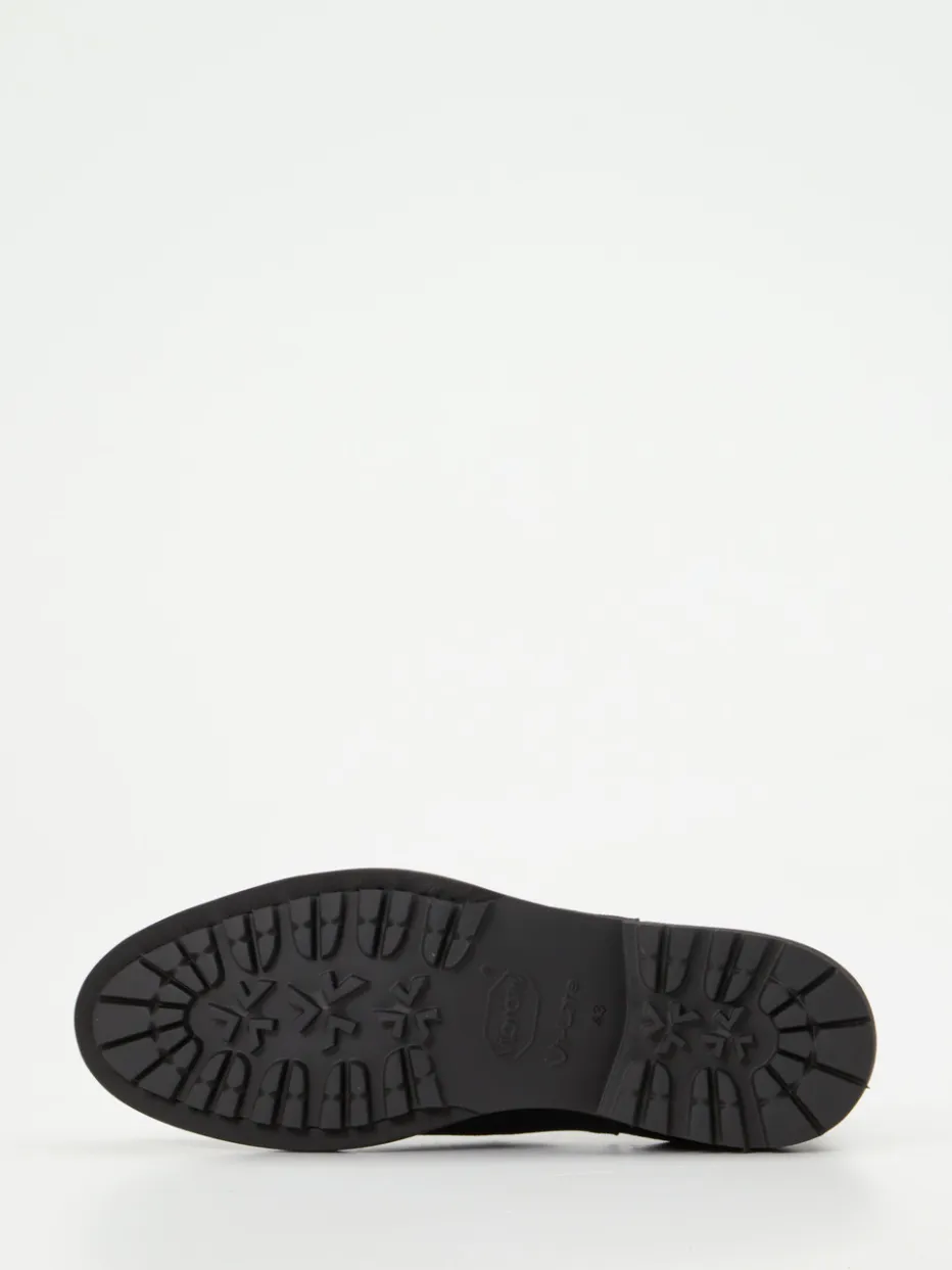 Starker Auftritt in Samtleder.Konstantin Starke präsentiert klassische Chelsea Boots für Herren. Für stilbewusste City-Kombinationen im Herbst sind diese dunkelblauen Stiefeletten ideal. Das samtig angeschliffene Veloursleder erhält durch die matte Oberfläche und tonige Steppnähte eine dezente Tiefe. Seitliche Elastikeinsätze sowie eine rückseitige Zugschlaufe sorgen für die typische Chelsea-Optik und erleichtern den Einstieg. Die durchgenähte Vibram-Gummisohle mit braunem Rahmen bietet Trittsicherheit und passt zur minimalistischen Silhouette. Perfekt zu Wollmantel oder Chino – mit dezenter Noblesse im urbanen Alltag.