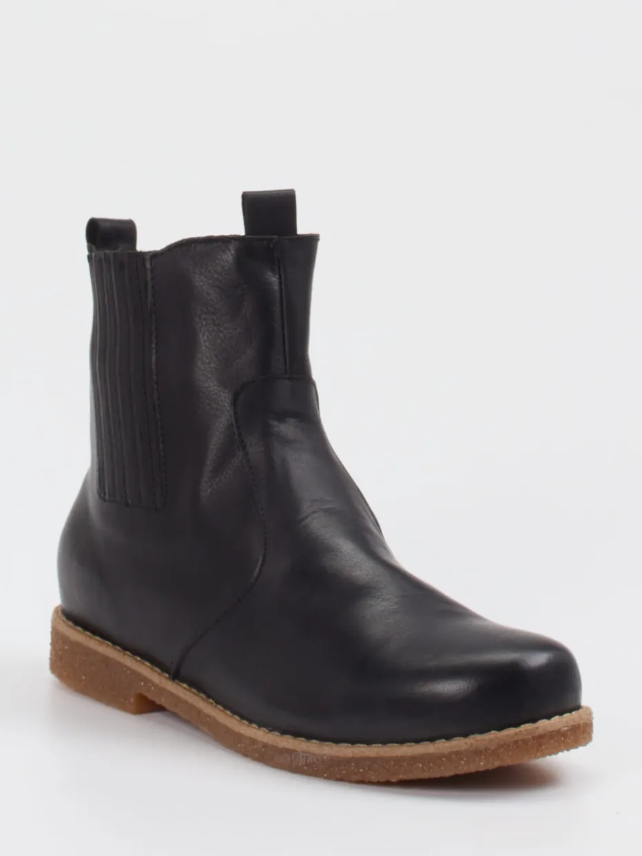 Minimalismus trifft Komfort.Andrea Conti präsentiert mit dieser schwarzen Chelsea-Stiefelette ein elegantes Modell für Alltag und Büro. Die leicht mattierte Oberfläche aus hochwertigem Kalbleder verleiht dem Schuh eine zurückhaltend edle Ausstrahlung. Der seitliche Reißverschluss erleichtert das An- und Ausziehen, während ein ledergefasster Elastikeinsatz die Bewegungsfreiheit erhöht. Mit ihrer schlichten Form, Ton-in-Ton-Nähten und der klassischen Schafthöhe von 14 cm wirkt die Silhouette zeitlos und modern. Die flache Gummisohle im Krepp-Look bietet angenehme Dämpfung und unterstreicht den natürlichen Stil – ideal für minimalistische Looks. Ein vielseitiger Begleiter mit klarer Formensprache und urbanem Alltagskomfort.