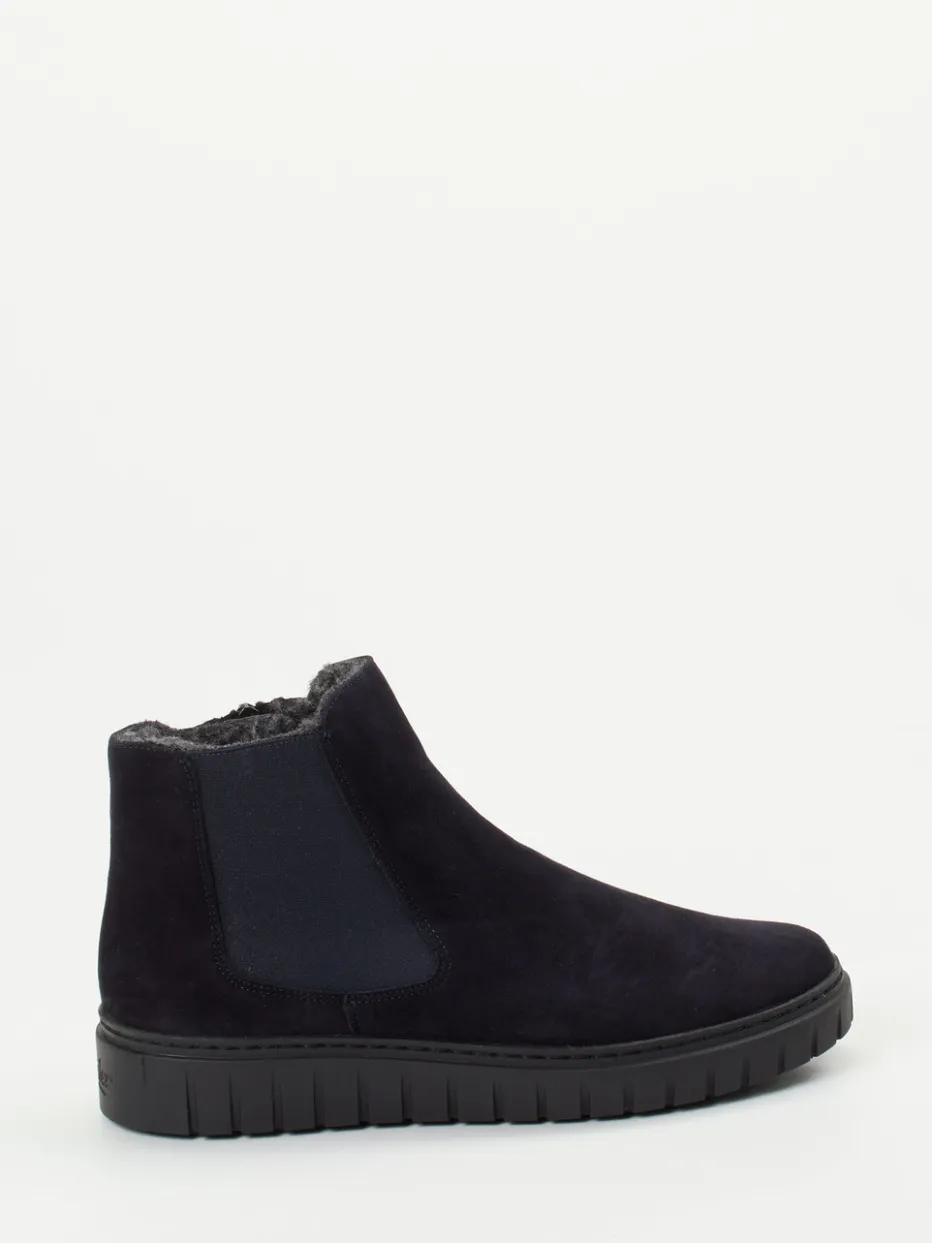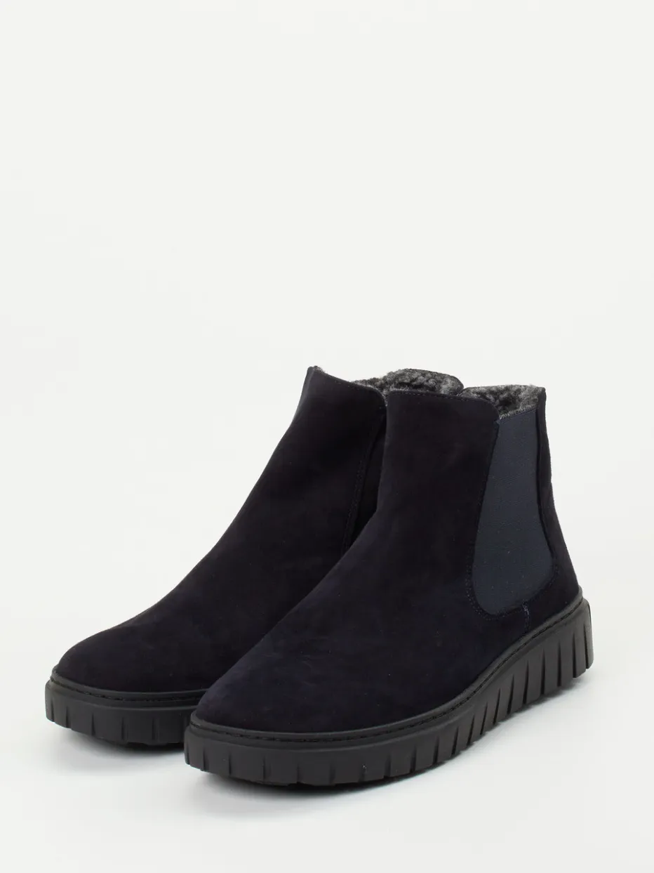 Minimalistisch, warm und stilbewusst.Die Marke Semler präsentiert eine Chelsea-Stiefelette für Damen, die sich durch klare Linien und hohe Alltagstauglichkeit auszeichnet. Ob beim Stadtbummel oder für entspannte Stunden zu Hause – das matte, dunkelblaue Veloursleder liegt samtig weich am Fuß und harmoniert mit dem tonigen Elastikeinsatz und dem dezenten Innenreißverschluss. Kuscheliges Teddy-Futter aus Textilfaser sorgt für angenehme Wärme, während die rutschfeste Gummisohle mit markantem Profil sicheren Tritt auf winterlichem Untergrund verleiht. Die knöchelhohe, rund zulaufende Silhouette passt perfekt zum entspannteren Quiet Luxury-Trend. Ein Wechselfußbett unterstützt individuell. Semler steht für durchdachten Komfort mit urbaner Eleganz in jeder Jahreszeit.