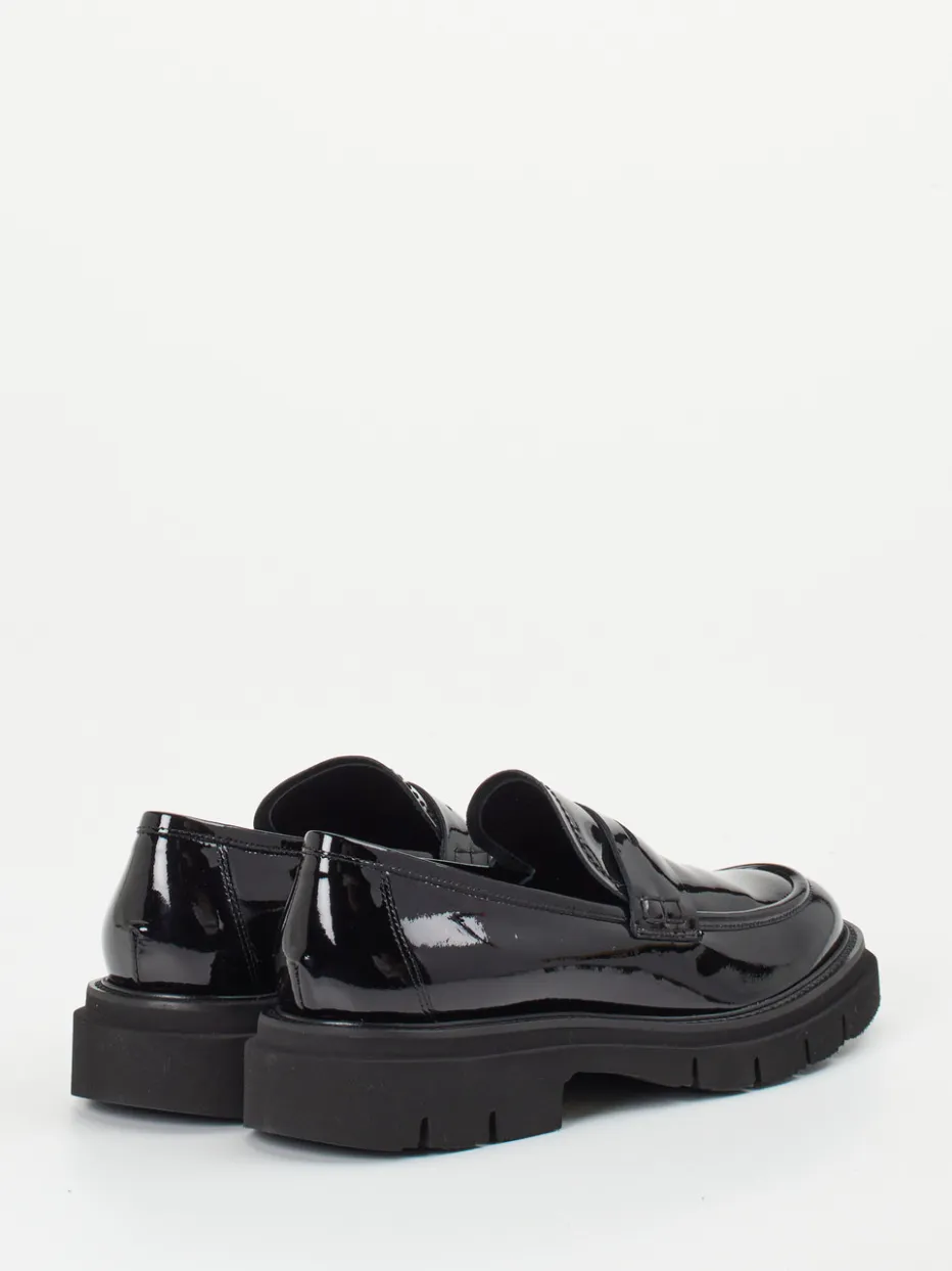 Mit glänzendem Lackleder und markanter Profilsohle interpretiert Mannori den Loafer modern und selbstbewusst. Ein stilistisches Bindeglied zwischen Minimalismus und Streetwear.