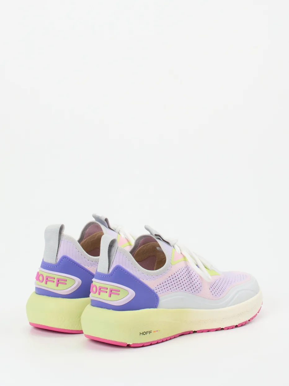 Statement für trendorientierte Streetwear.THE HOFF BRAND präsentiert mit diesem Damen-Sneaker ein echtes Trend-Piece im Chunky-Stil. Ideal für urbane Freizeitlooks verbindet der Schuh modische Präsenz mit funktionalem Komfort. Das leichte Textilmaterial zeigt sich mit meshartiger Oberfläche und Ortholite-Innensohle angenehm luftig. Pastelllila, Rosa und Neongelb setzen auffällige Akzente, während kontrastierende Overlays und Logo-Prints die Dynamik unterstreichen. Die voluminöse Silhouette mit pink betonter Gummisohle trifft den Colorblocking-Trend der SS25 und spielt auf das Y2K-Revival an. Perfekt zu Hoodies oder sportlichen Streetwear-Styles. Dieser Sneaker steht für modische Eigenständigkeit mit hohem Tragekomfort.