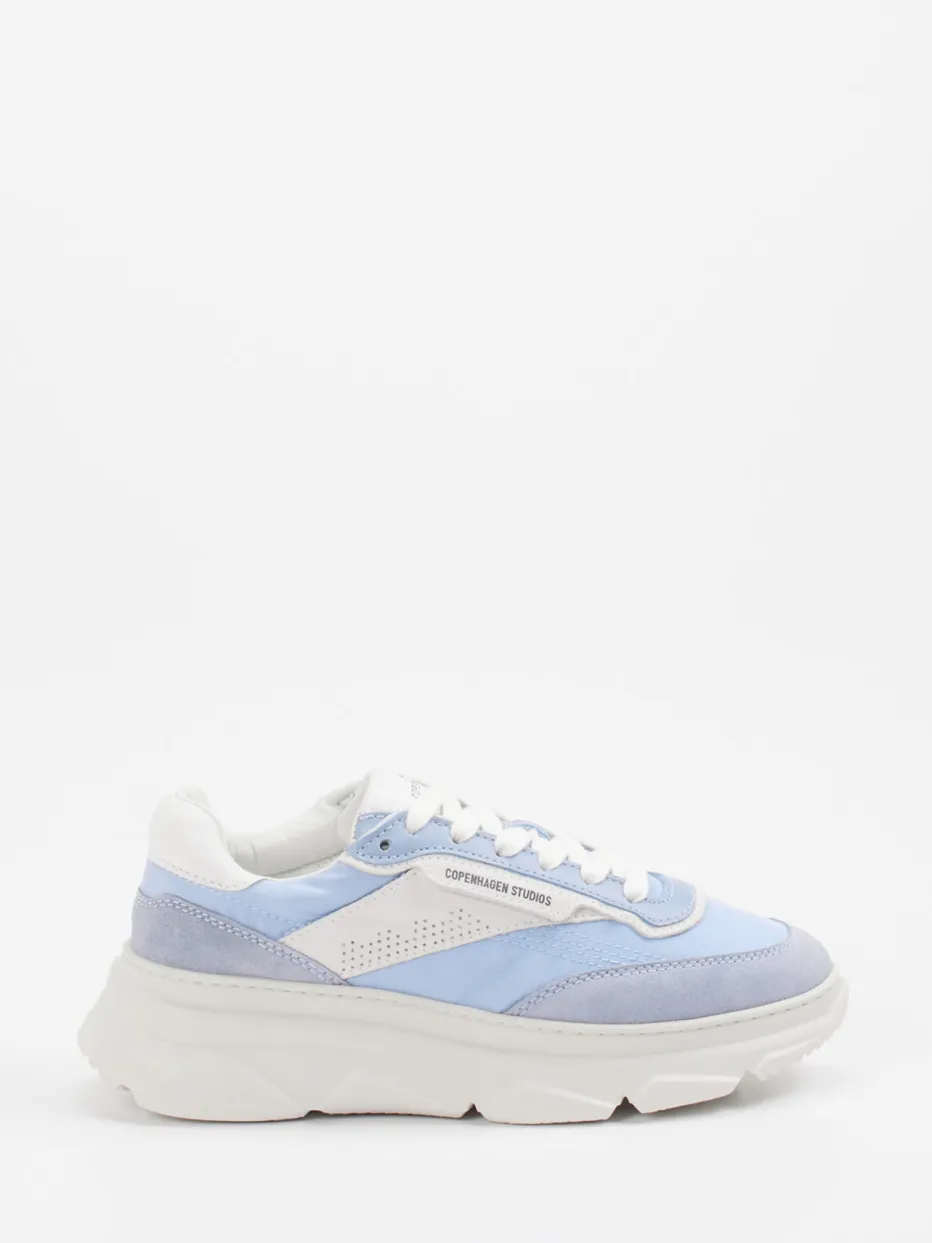 Frühlingsfrische trifft Streetstyle.Die Marke Copenhagen präsentiert mit diesem Chunky Sneaker ein modisches Statement für trendorientierte Damen. Ideal für Freizeit und Urlaub besticht das Modell durch hochwertiges Veloursleder, das samtig angeschliffen und in frischem Pastellblau verarbeitet ist. Akzente in Weiß und Hellgrau unterstreichen den cleanen Look, während perforierte Seitenelemente und tonale Nähte für dezente Raffinesse sorgen. Die markante Keilsohle mit griffigem Profil bringt moderne Streetwear-Einflüsse gekonnt auf die Straße und ergänzt jeden Casual-Style – etwa mit weitem Jeansrock oder Jogger. Dank gepolstertem Schaft und wechselbarem Fußbett bietet der Sneaker zudem hohen Komfort. Copenhagen verbindet nordisches Design mit urbaner Trendklarheit.