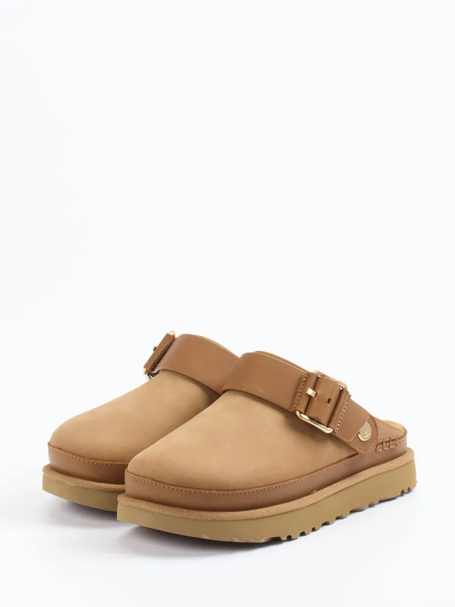 UGG interpretiert die Kategorie Clogs neu: Diese hellbraune Pantolette aus Nubukleder bietet ein Plus an Funktionalität und Style.