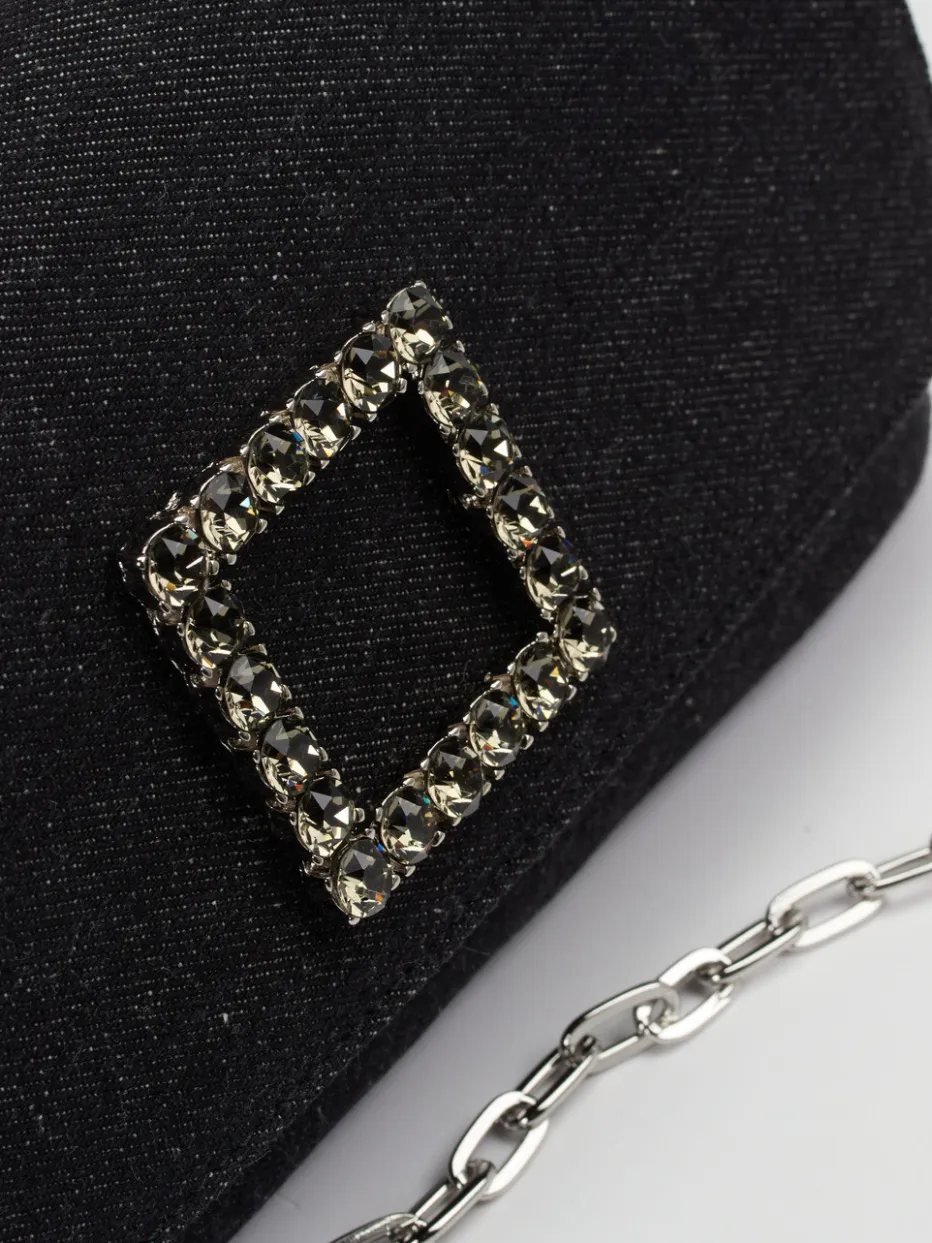 Diese Clutch überzeugt mit markanter Strassschnalle und abnehmbarer Kette – ein vielseitiges Highlight für stilvolle Abendauftritte.