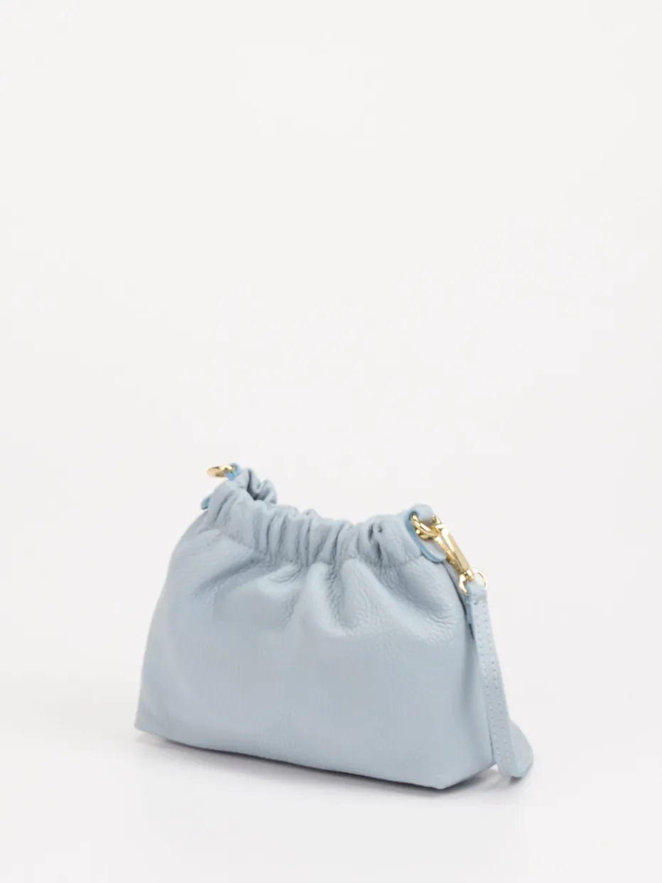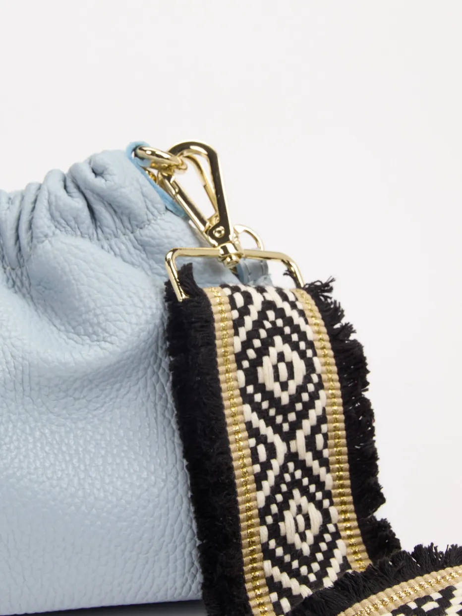 Diese Minitasche der Marke Marlon Firenze versprüht italienischen Charme. Die Beutelform aus himmelblauem Kalbleder wirkt kokett und verspielt. Sie können den Look der Tasche nach Belieben verändern, indem Sie die beiden Schultergürtel je nach Geschmack austauschen oder weglassen. Entscheiden Sie, ob Sie lieber einen eleganten, tonigen Kalblederriemen oder einen breiten Textilriemen im Boheme- Stil einsetzen wollen. Die Tasche begleitet Sie auch als stilvolle Clutch. Der Innenraum bietet genügend Platz für Ihr Handy und Portemonnaie. Ein zeitloses Accessoire für viele schöne Augenblicke! – Material: Kalbleder – Farbe: Blau – Maße: ca. 14 x 20 x 8 cm – Innen: ein Reißverschlussfach – Verschluss: Druckknopffach – Schulterriemen: ca. 120 cm, abnehm- und verstellbar – Textilriemen: ca. 115 cm, abnehm- und verstellbar