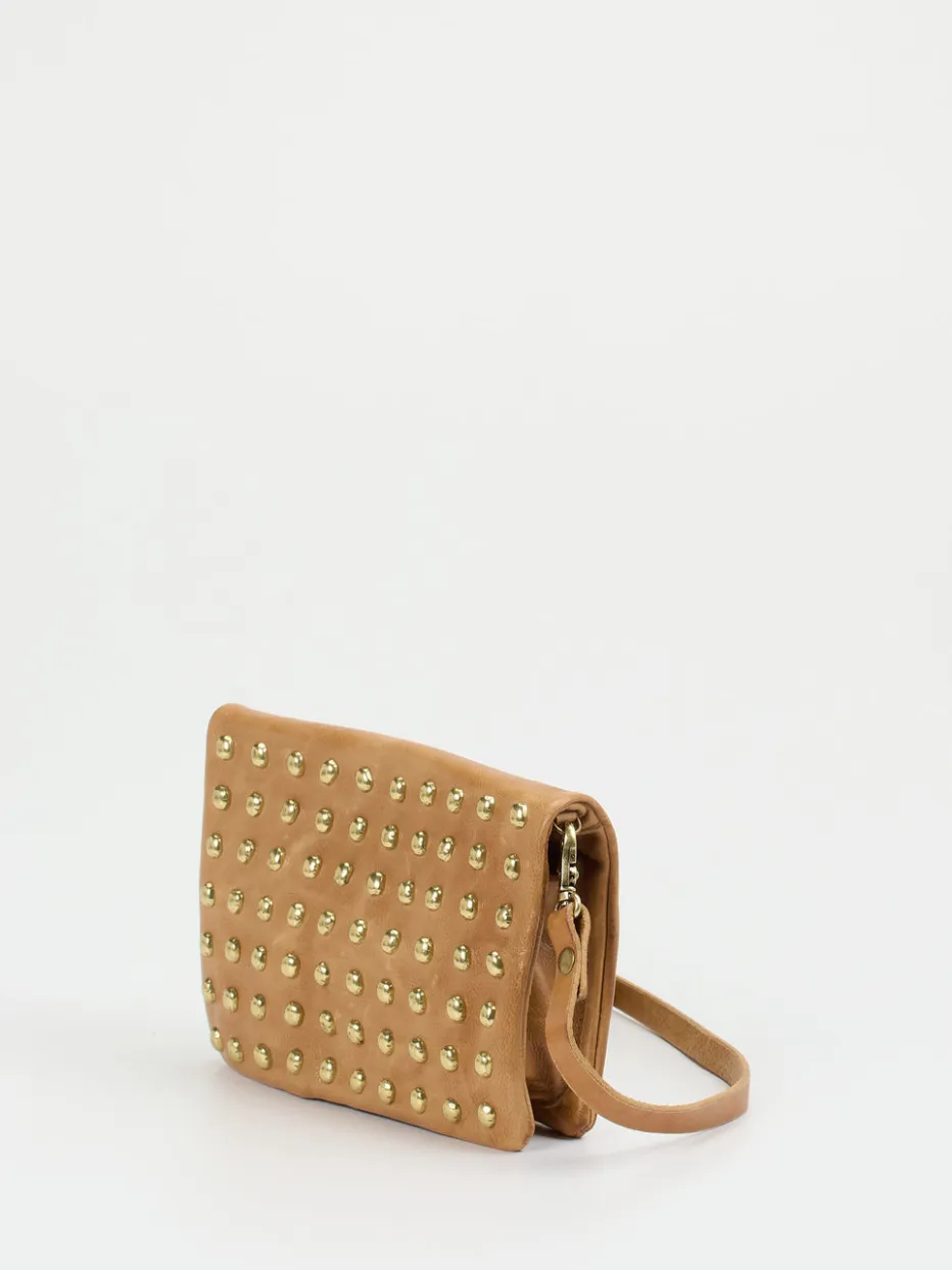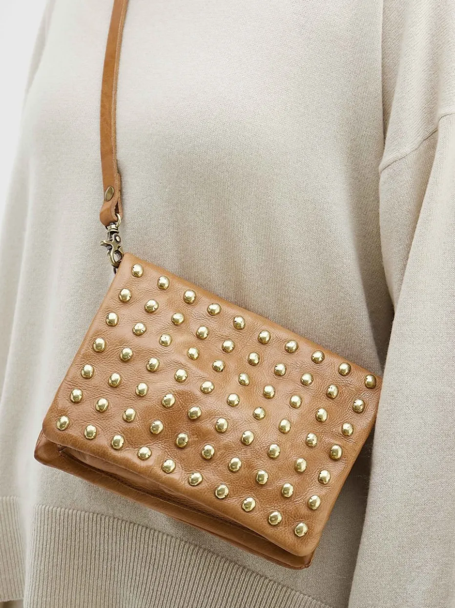 Individuell und ausdrucksstark – Die italienische Marke A.S.98 beweist mit dieser cognacfarbenen Umhängetasche modische Raffinesse. Das sportiv genarbte Kalbleder besticht dabei mit seiner wertigen Verarbeitung. Praktisch und funktional ist die Unterteilung im Inneren in zwei Reißverschlussfächern. Die goldfarbenen Nieten auf der Vorderseite lassen die Tasche zum Hingucker werden und verleihen ihr einen einzigartigen Charakter. – Obermaterial: Leder – Futter: Textil – Farbe: cognacfarben – Größe: ca. 16 x 21 x 4 cm (H x B x T) – Schulterriemen: max. Länge ca. 120 cm, verstell-und abnehmbar – Verschluss: Druckknopf und Reißverschluss