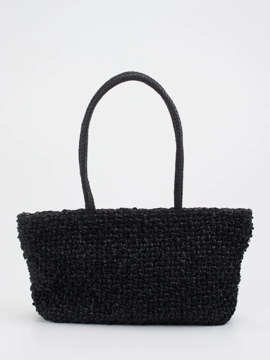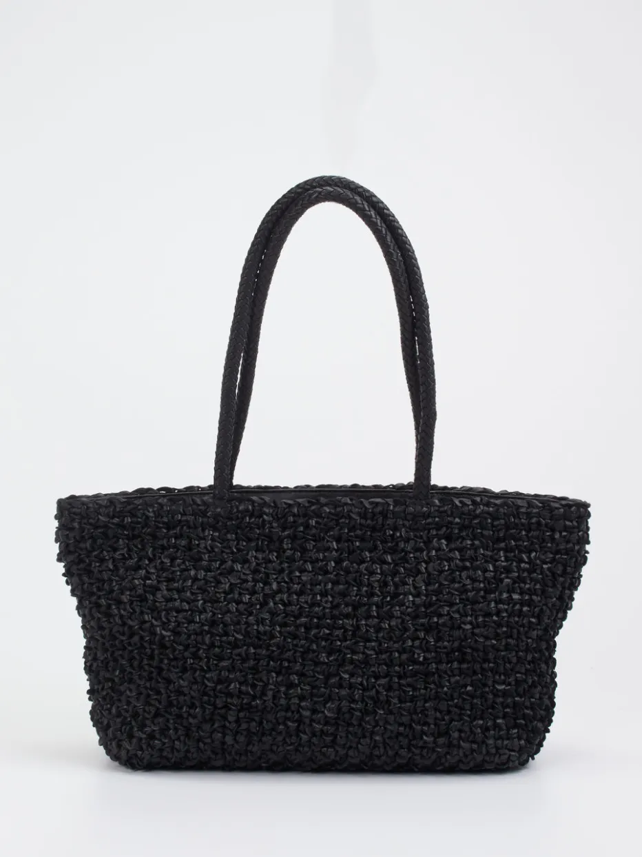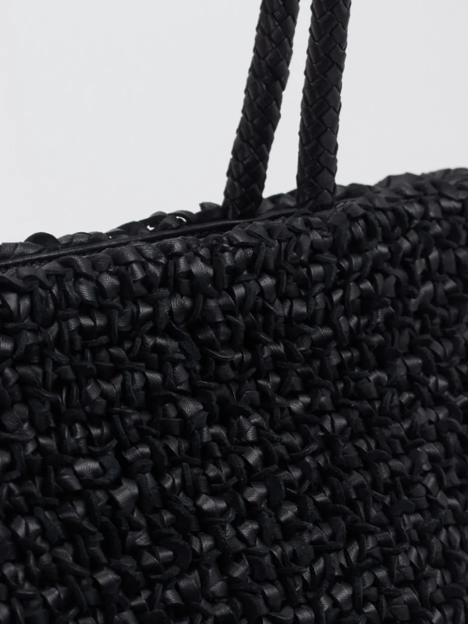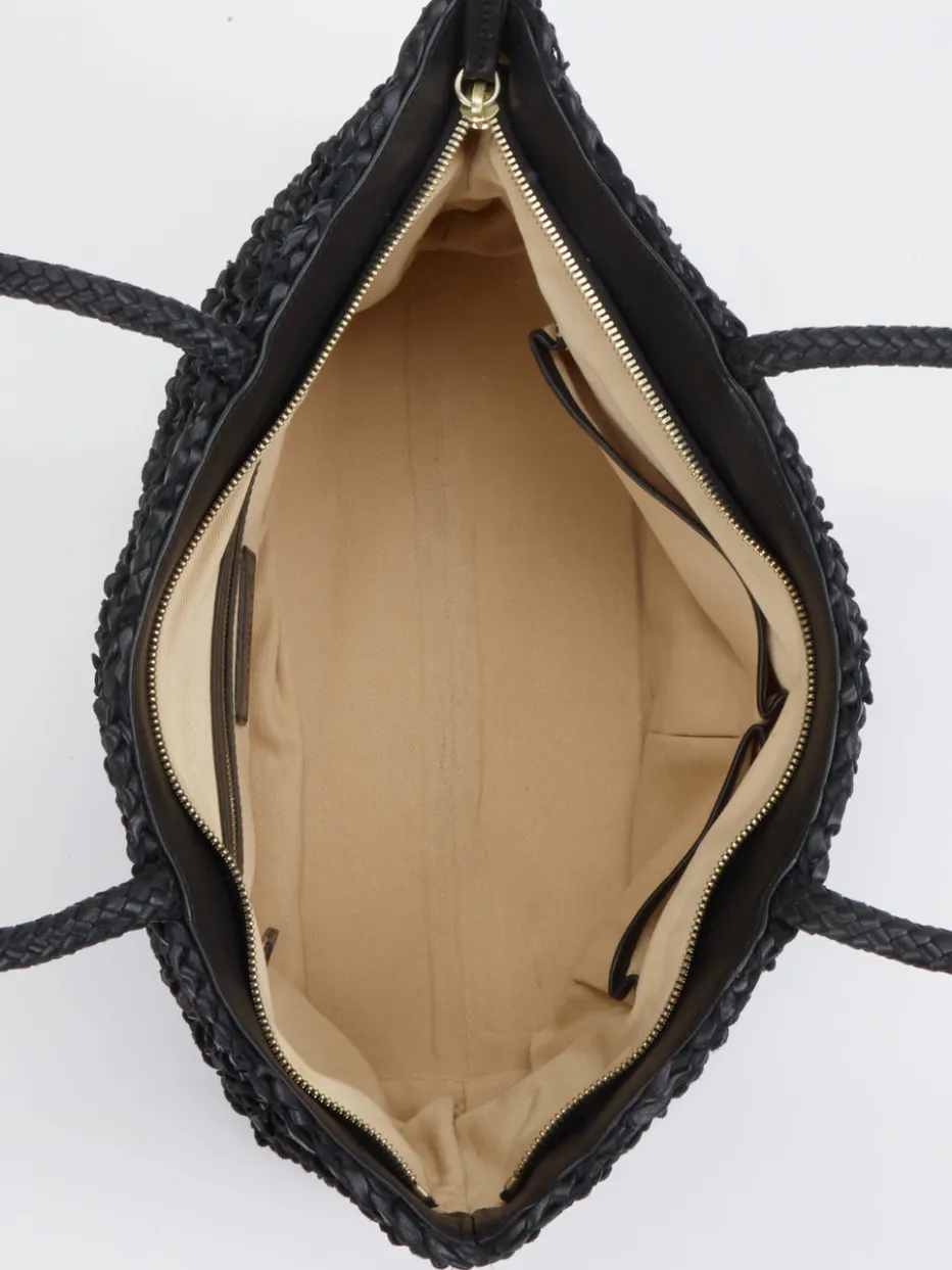 Eleganz trifft Funktionalität: Das geflochtene Leder in tiefem Schwarz verleiht dieser Shopper-Bag einen strukturierten Look mit sommerlicher Note.