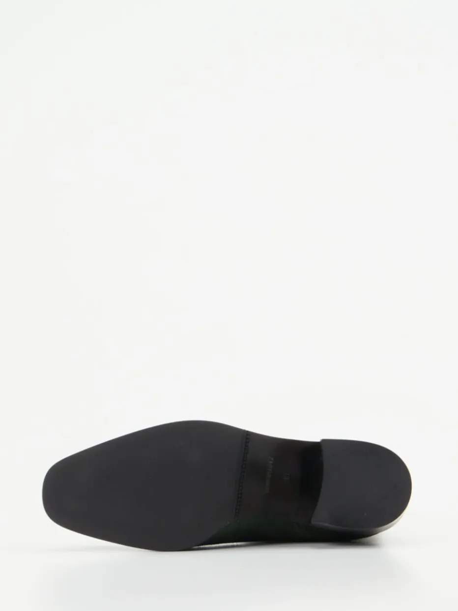 Die Chelsea Boots von Andrea Puccini überzeugen mit hochwertigem Veloursleder in Tannengrün und einer schmal-spitzen Silhouette – minimalistisch interpretiert für Herbst/Winter.