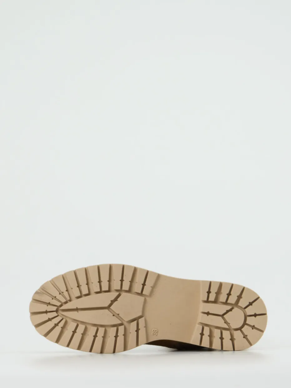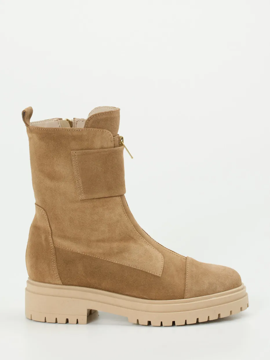 Bei kühlem Wetter und unbeständigem Untergrund sorgt die leicht erhöhte Gummisohle mit starkem Profil für Trittsicherheit. Das samtig matte Veloursleder in Nussbraun wird durch goldfarbene Reißverschlüsse in Szene gesetzt. Die gerade Silhouette mit breitem Schaft verleiht dem Design modern-minimalistische Klarheit. Charakterstarke Elemente wie der Frontzip und die Zuglasche betonen den Utility-Look, während Streetwear-Anleihen den aktuellen Chunky-Trend aufgreifen. Besonders harmonisch zu Parka und Naturtönen.