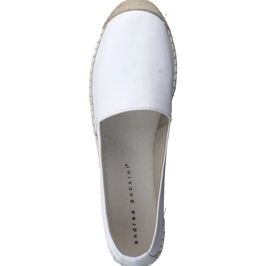 Diese leichten Espadrilles der Marke Andrea Puccini sind unkomplizierte Begleiter an warmen Sommertagen. Lebendig wirkt das weiße Lammnappaleder durch die sportive Ausrüstung. Der naturfarbene Hanfboden hat eine schützende Laufsohle aus Gummi und ist von innen weich gepolstert.
