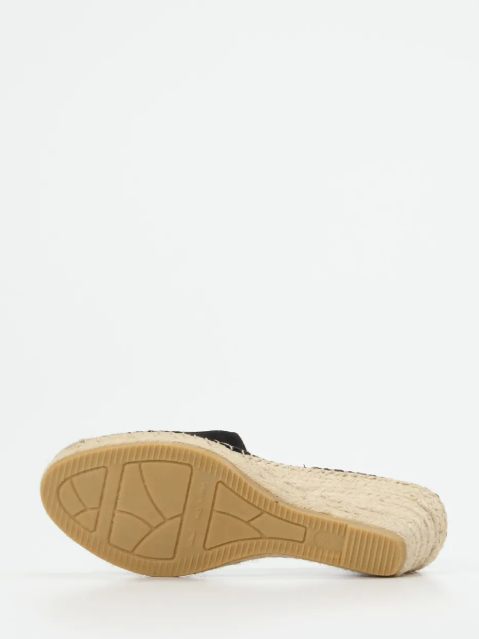 Sommerlich interpretiertes Espadrille-Design kombiniert mit hochwertigem Veloursleder und flexiblen Elastikriemen für optimalen Komfort.