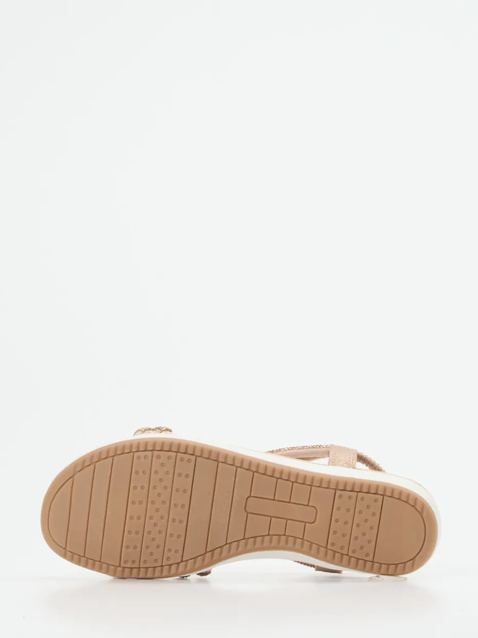 Ob beim Stadtbummel oder Urlaubsspaziergang – das altrosafarbene Metallicleder mit matter Oberfläche bringt in Kombination mit den Ton-in-Ton-Strassdetails dezenten Schimmer ins Outfit. Eine flache Silhouette, das weiche Fußbett und der elastische Fersenriemen garantieren Komfort bei jedem Schritt. Die profilierte Gummisohle sorgt dabei für Trittsicherheit. Als stilvolle Ergänzung zu leichten Sommerkleidern oder hellen Leinenhosen betont sie einen casual-chicen Stil.