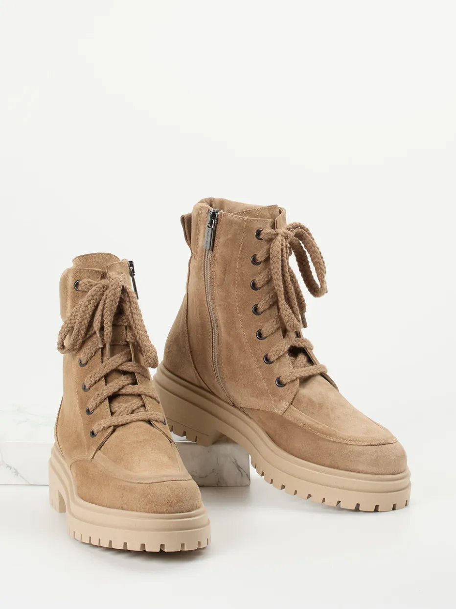 Damen Andrea Puccini – Schnürboots aus Veloursleder in Sandbeige