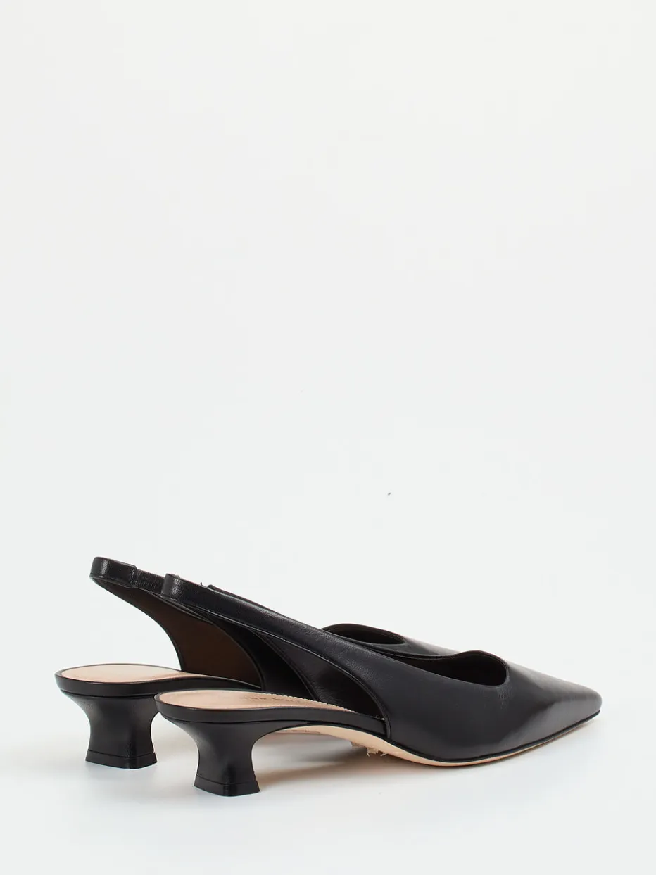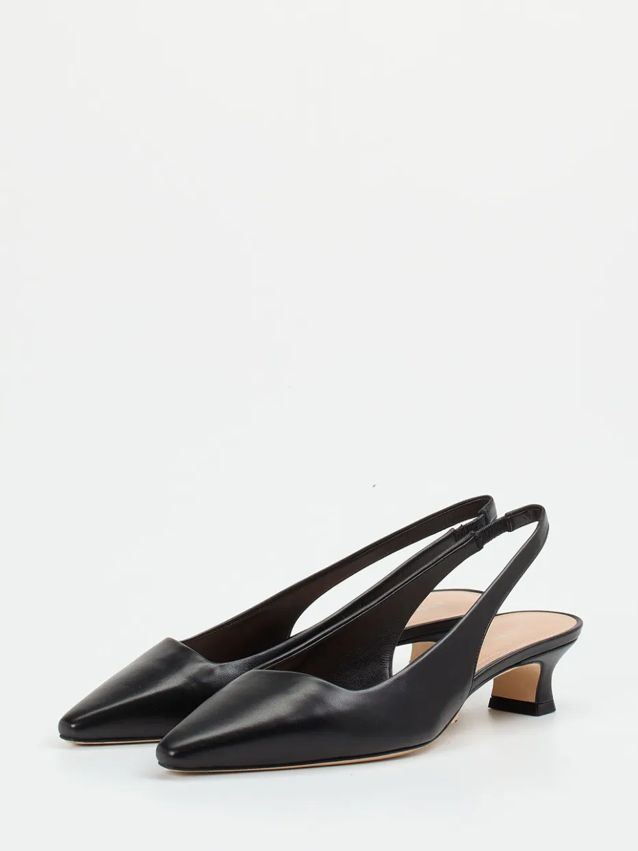 Feines Ziegenleder, elegante Linienführung und ein bequemer Kitten-Heel vereinen sich in diesem Slingback-Modell zu zeitlosem Chic – stilvoll interpretiert für moderne Anlässe.