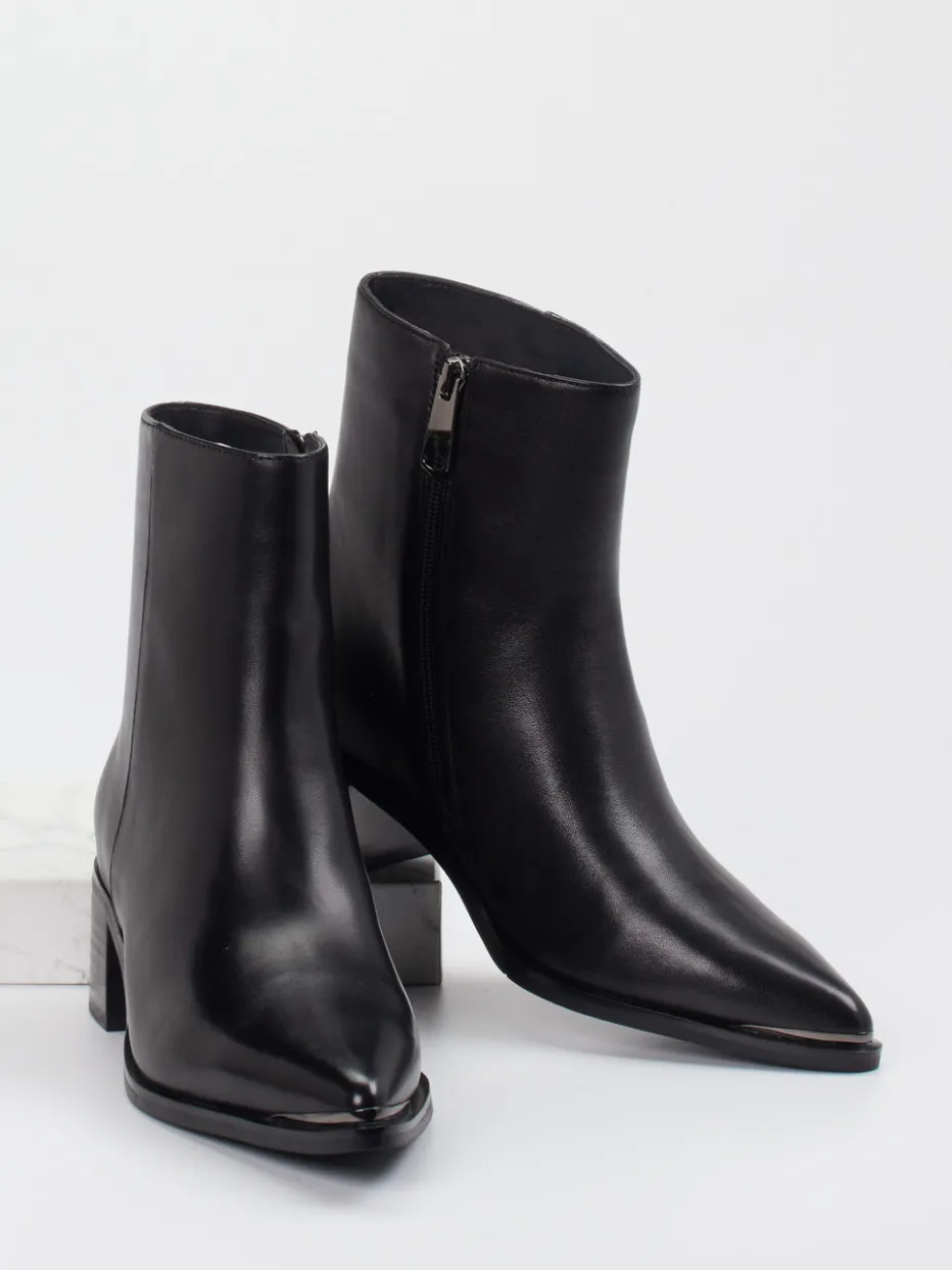 Schwarze Eleganz in reduzierter Form.Andrea Puccini zeigt mit dieser Damen-Stiefelette eine moderne Version klassischer Ankle Boots. Perfekt für stilbewusste Bürotage oder den entspannten City-Look – das feine schwarze Lammleder mit glänzender Oberfläche vermittelt zeitlose Noblesse. Die schmal konische Silhouette mit eleganter, leicht spitzer Kappe wird von einem silberfarbenen Innenreißverschluss dezent ergänzt. Eine hochwertige Gummisohle sorgt für Trittsicherheit, der 5 cm hohe Blockabsatz unterstützt einen eleganten Gang. Inspiriert vom Minimalismus und Trendthemen wie Quiet Luxury passt dieses Modell hervorragend zu monochromen Styles und klassischen Outfits. Ein Kombitalent mit luxuriösem Finish und handwerklichem Anspruch.