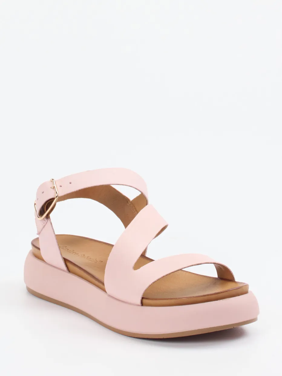 Sommerlich, modern, komfortabel.Andrea Sabatini präsentiert eine Plateau-Sandale für Damen, die Stilgefühl mit Alltagskomfort verbindet. Für entspannte Stadtspaziergänge oder sommerliche Urlaubstage überzeugt dieses Modell durch weiches Kalbleder in zartem Rosa, ergänzt um ein natürlich braunes Innenfutter. Die offene Silhouette mit gekreuzten mattstrukturierten Riemen und goldfarbener Dornschließe verleiht eine feminine wie moderne Ausstrahlung. Eine gepolsterte Decksohle und die strukturierte Gummiplateau-Sohle bieten angenehme Stabilität und greifen den aktuellen „Comfort Platforms“-Trend auf. Besonders gut harmoniert das Design mit Leinenkleidern oder fließenden Stoffhosen. Der perfekte Mix aus Tragekomfort, eleganter Zurückhaltung und sommerlicher Leichtigkeit.