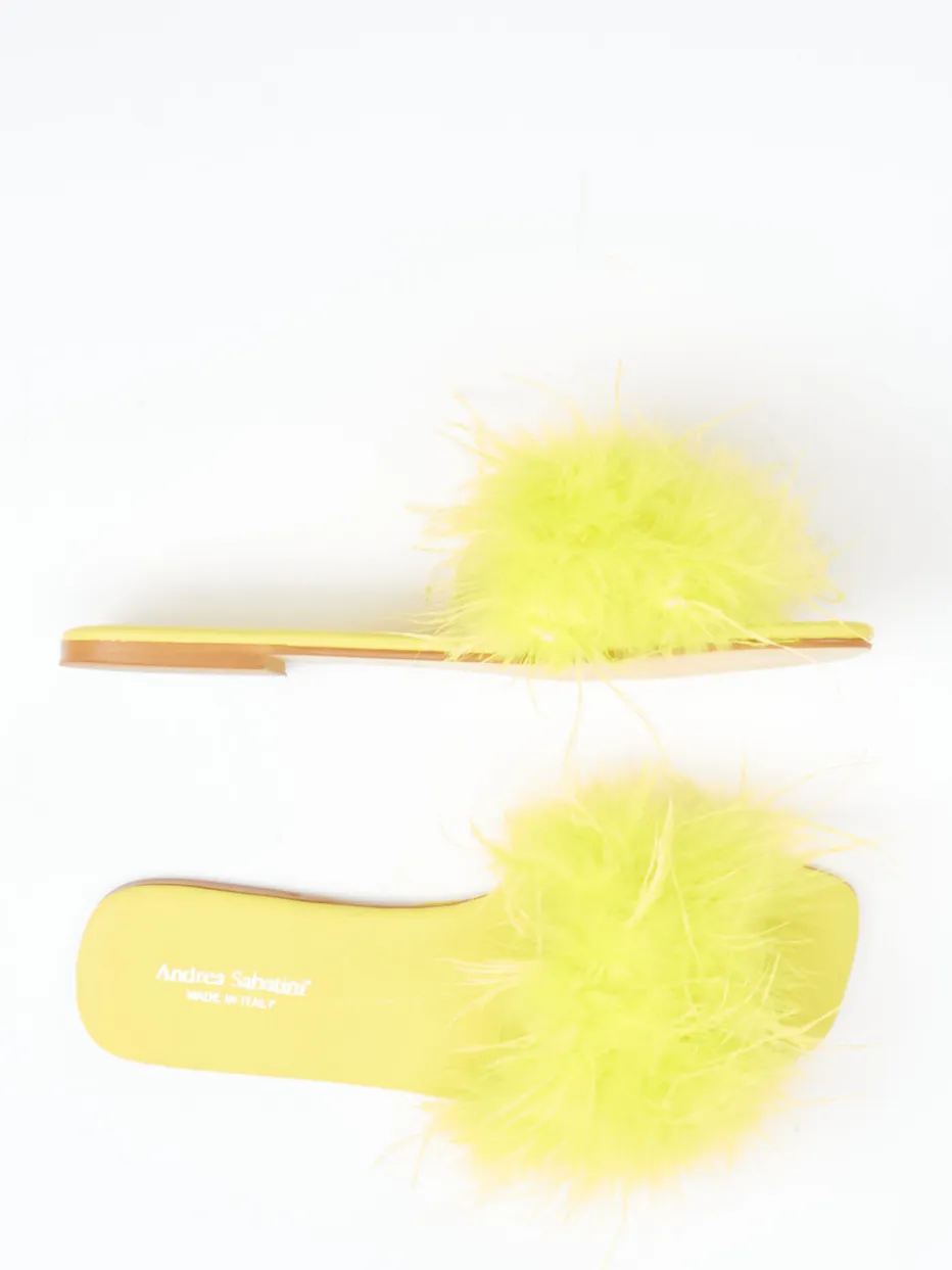 Damen Andrea Sabatini – Slides aus Fell mit Federbesatz