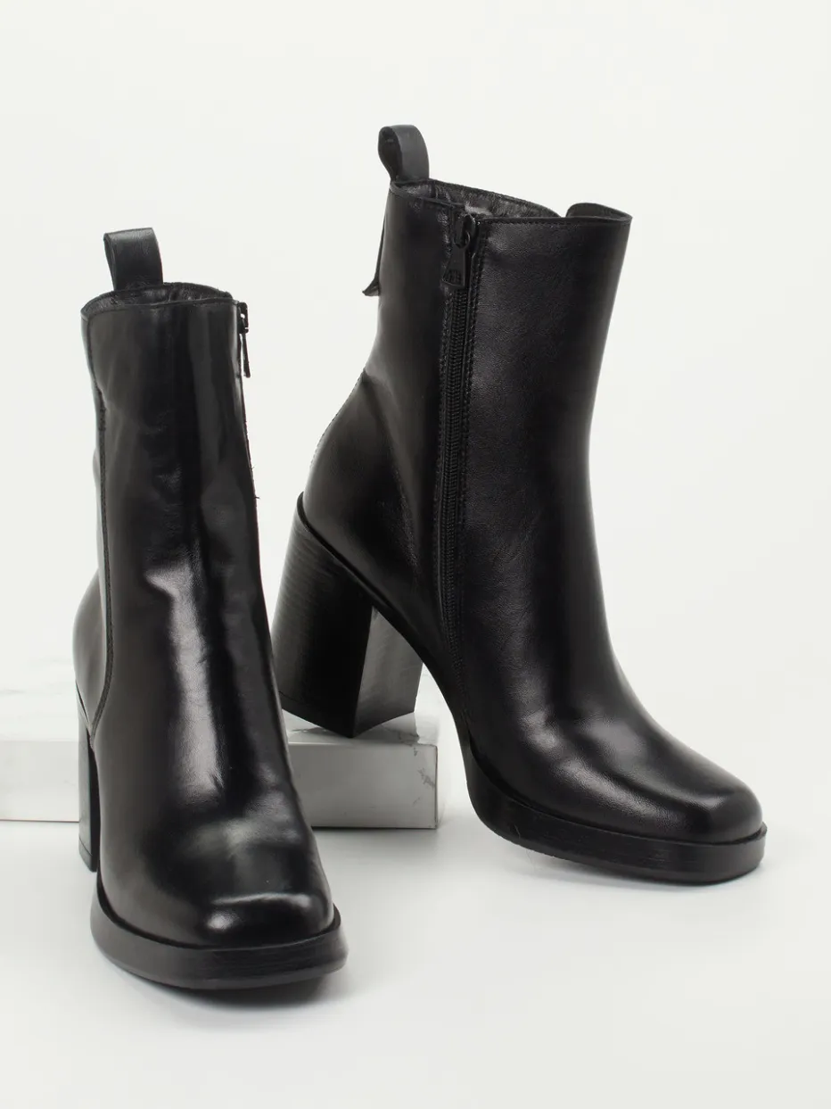 Klassisch-modern interpretiert: Diese Stiefeletten verbinden glänzendes Kalbleder mit puristischer Form und urbanem Zeitgeist. Ideal für stilbewusste City-Looks.