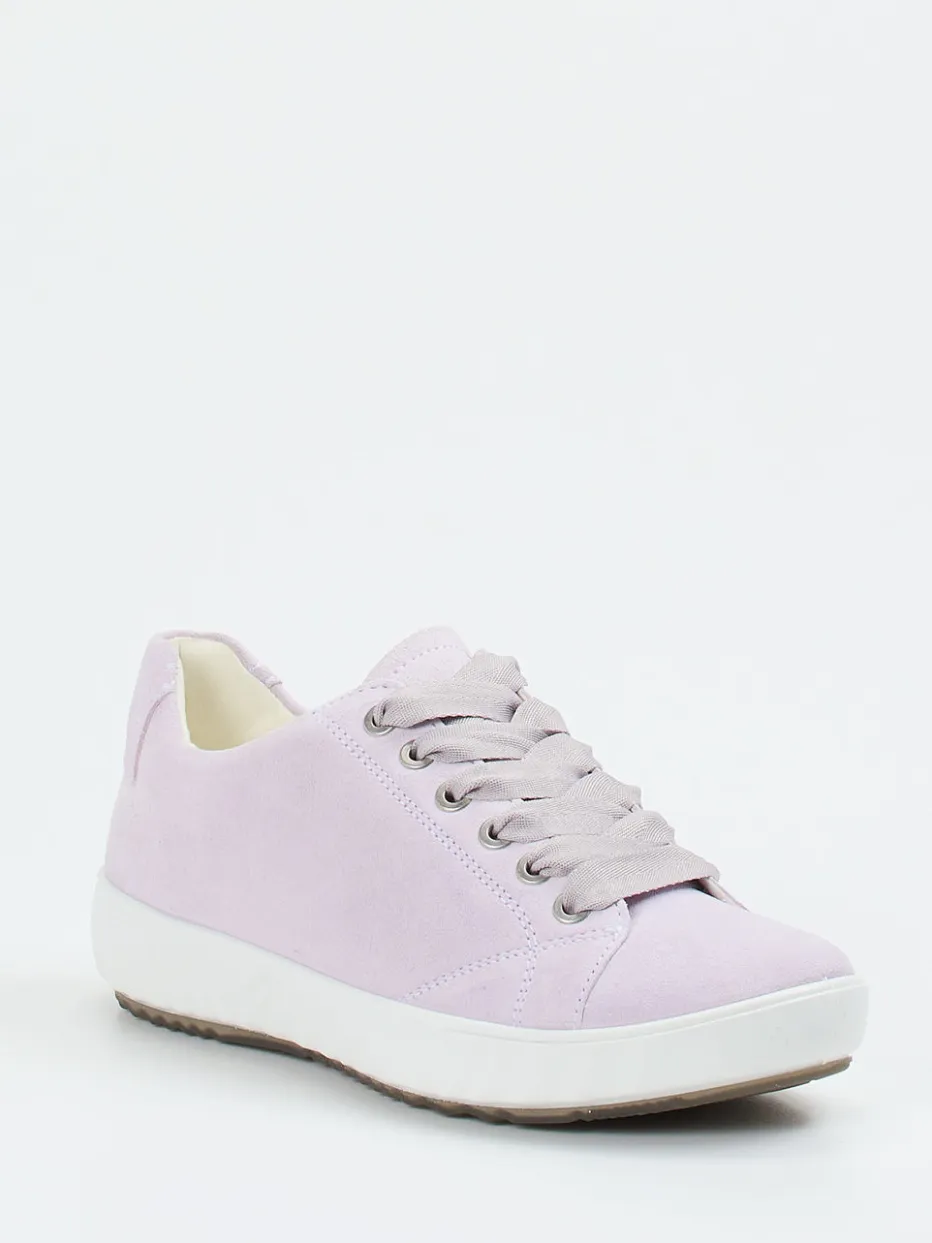 Pastell trifft Komfort.Ara präsentiert einen federleichten Low-Top Sneaker für Damen. Ob beim Spaziergang durch die Stadt oder im Café – dieser Sneaker aus hochwertigem Veloursleder, samtig angeschliffen, passt ideal zu entspannten Alltagsmomenten. Das Modell zeigt sich in trendigem Flieder mit klassisch-runder Silhouette und tonigen Nähten. Eine silberfarbene Ösenreihe, breite Schnürbänder und der gepolsterte Einstieg unterstreichen den lässigen Komfortanspruch. Innen versprechen weiches Textilfutter und ein herausnehmbares Fußbett zusätzlichen Tragegenuss. Perfekt für moderne Casual-Looks mit pastellfarbenem Feinschliff. Komfort und Leichtigkeit in stilvoller Zumnorde-Qualität.