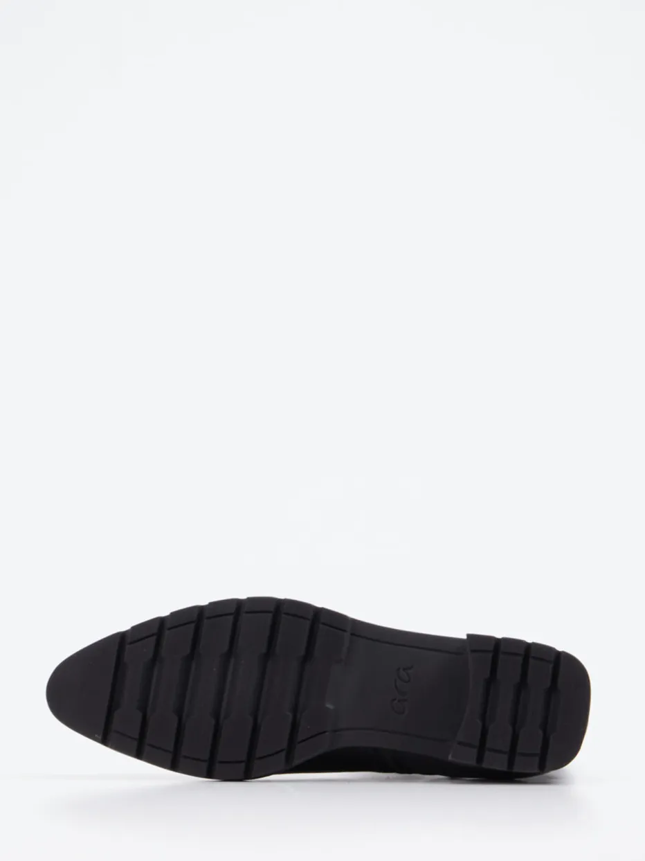 Eleganz trifft Funktion.Die Marke Ara präsentiert mit dieser Damen-Stiefelette ein klassisches Modell für Alltag und Büro. Gefertigt aus feinem Kalbleder mit dezenter Glanzoberfläche, überzeugt der Schuh durch seine schlichte Silhouette und das tiefschwarze Farbdesign. Der seitliche Reißverschluss erleichtert das Anziehen, während das weiche Futter aus Fleece für angenehme Wärme sorgt. Eine ausgeprägte Gummisohle mit Profil bietet Trittsicherheit – besonders geeignet für kühle Herbst- und Wintertage. Stilistisch passt der Schuh perfekt zu klaren Looks in Urban-Minimalismus. Verlässlicher Komfort und zeitgemäßer Stil – typisch Ara.