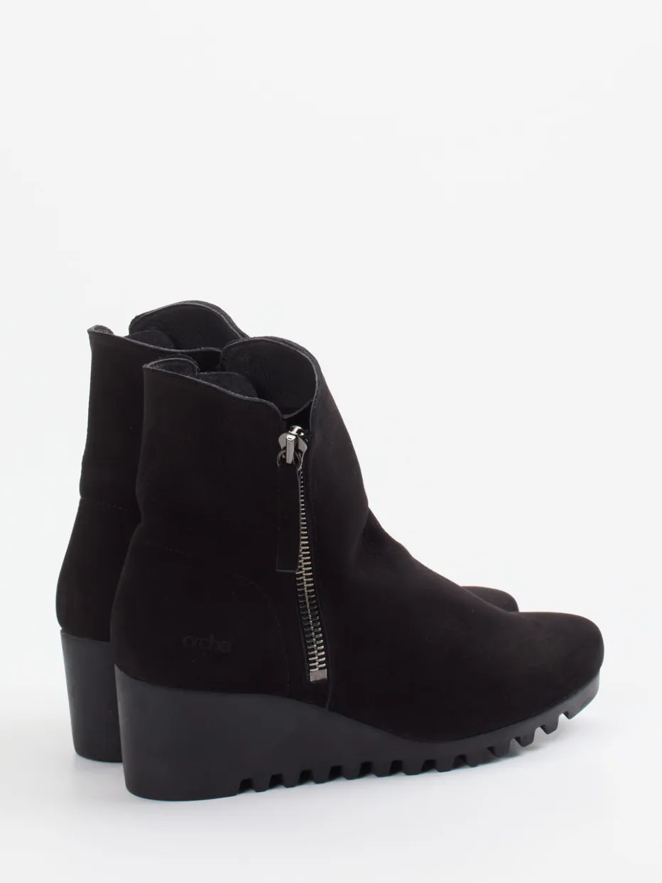 Die minimalistische Silhouette und das samtig angeschliffene Nubukleder verleihen dieser Stiefelette von Arche ein zeitlos urbanes Erscheinungsbild mit funktionalem Komfort.