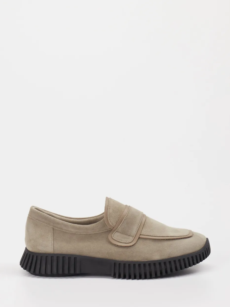 Moderner Loafer aus weichem Veloursleder mit strukturierter Profilsohle – verbindet reduziertes Design mit urbaner Präsenz.