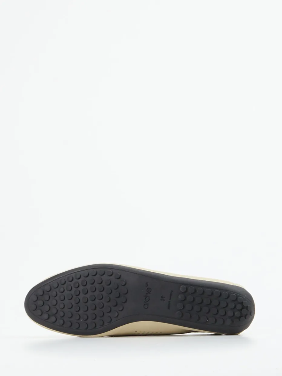 Ideal für warme Tage im Büro oder entspannte Stadtbummel: Das hell beigefarbene Nubukleder ist samtig angeschliffen und wird durch ein perforiertes Obermaterial luftig ergänzt. Die flache, leicht zulaufende Silhouette, Ton-in-Ton-Nähte und die schwarz abgesetzte Gummisohle zeigen eine skandinavisch inspirierte Klarheit. Mit elastischem Ferseneinsatz und lederbezogenem Fußbett sorgt der Schuh für Komfort über Stunden. Das Design korrespondiert mit dem „Quiet Luxury“-Trend der Saison und passt zu monochromen Outfits oder leichten Sommerstoffen.