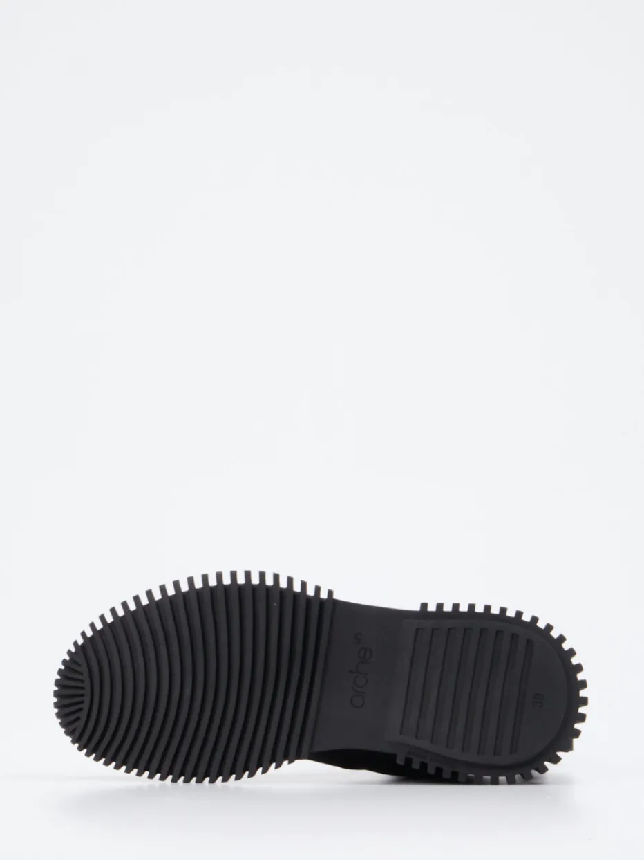 Funktionaler Minimalismus mit Stil.Die Damen-Stiefeletten von Arche überzeugen durch ihr progressives Design in der Stilrichtung Quiet Luxury. Perfekt für urbane Tage mit wechselnden Anforderungen, verbindet das Modell Neopren-Textil mit glattem Leder zu einer eleganten Silhouette. Die schwarze Farbgebung und die schmal zulaufende Form wirken modern und zurückhaltend zugleich. Ein elastischer Schaft sorgt für angenehmes Anziehen, während die profilierte Gummisohle urbanen Grip bietet. Die Ton-in-Ton-Verarbeitung unterstreicht den hochwertigen Look. Ideal zu Oversized-Mantel und Crossbody-Bag. Markentypisch vereint Arche Funktionalität, Komfort und moderne Designästhetik.