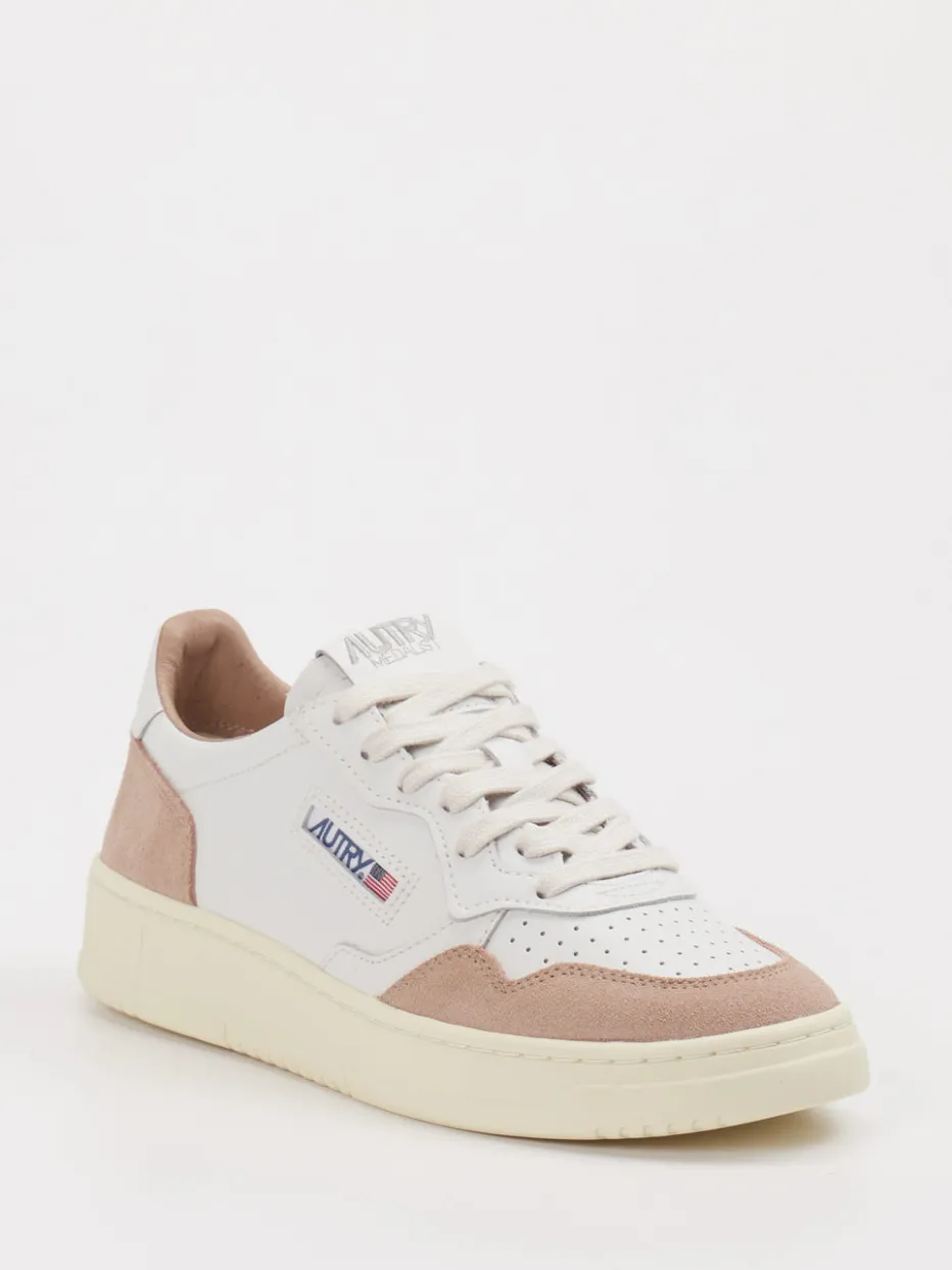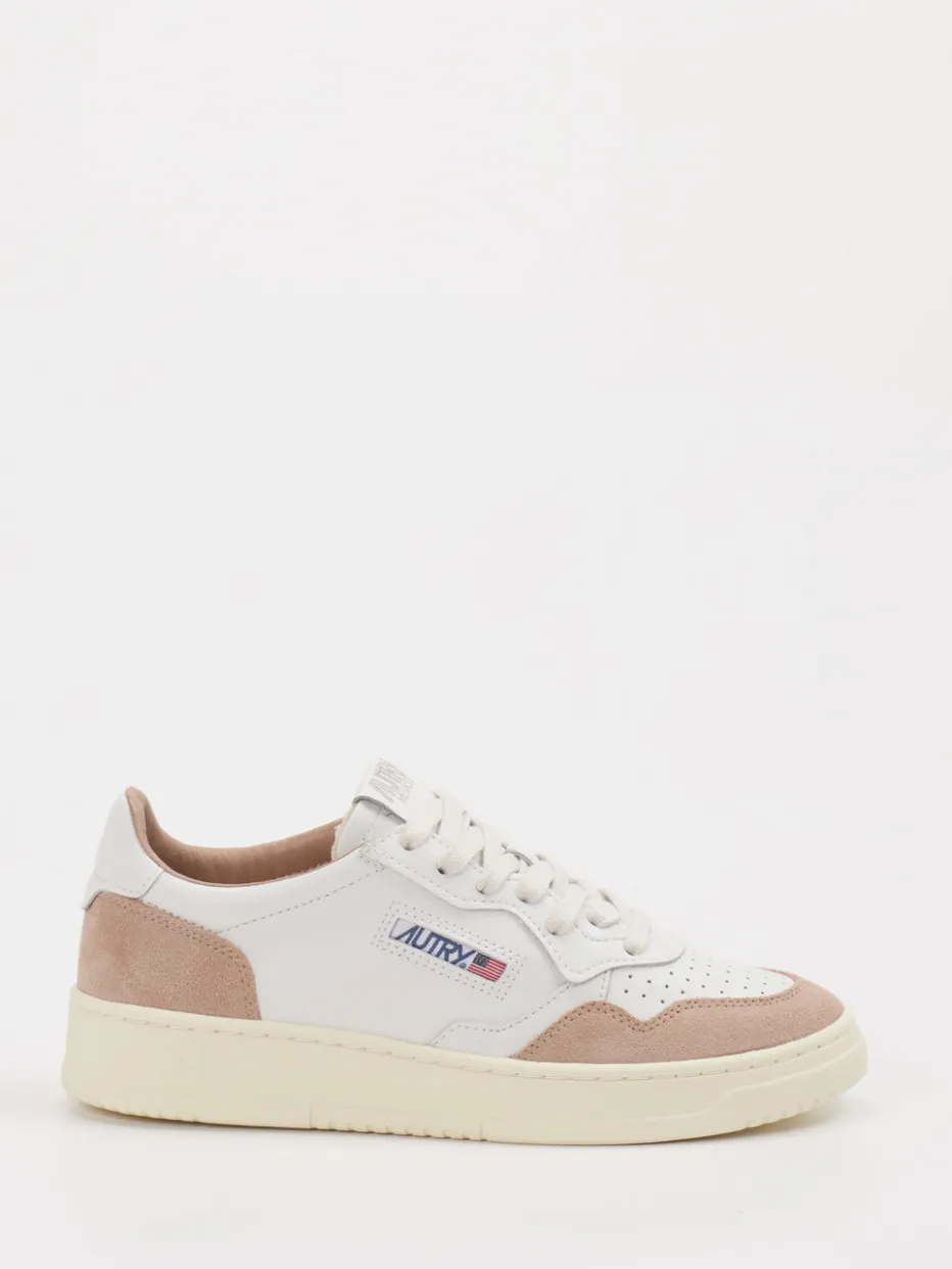 Minimalismus trifft Retro-Tennis. Die Marke Autry präsentiert mit diesen Unisex-Sneakern eine moderne Interpretation klassischer Low-Top-Silhouetten. Ideal für entspannte Tage in der Stadt oder im Alltag überzeugt das Modell mit einer hochwertigen Kombination aus glattem und velourigem Leder in Offwhite und Rosébeige. Die perforierte Zehenbox und das dezente Logo-Patch mit US-Flagge verleihen charakteristische Akzente. Eine tonale Schnürung, das atmungsaktive Textilfutter und die rutschfeste Gummisohle gewährleisten Komfort. Inspiriert vom Retro-Tennis-Stil fügt sich der Sneaker perfekt in den „Quiet Luxury“-Trend ein. Harmoniert mühelos mit hellen Chinos oder luftigen Sommerkleidern. Markentypisches Design mit Fokus auf Komfort und Zeitgeist.