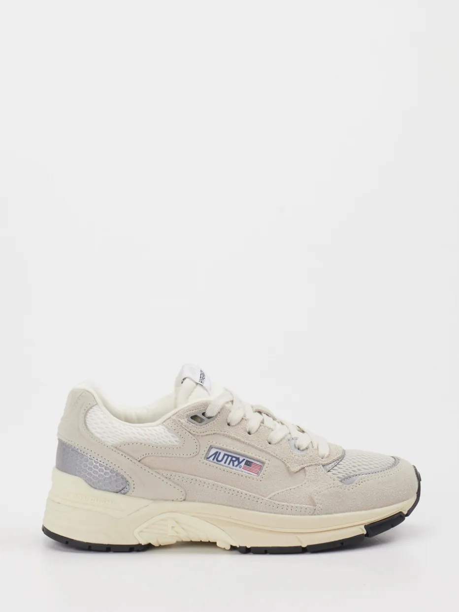 Sportlicher Retro-Charme trifft auf moderne Details. Autry präsentiert mit dem Sneaker Hyperway Low einen stilbewussten Retro-Runner für modisch orientierte Damen. Die Kombination aus softem Velourleder und atmungsaktivem Mesh sorgt für eine interessante Textur und angenehmen Tragekomfort. Das monochrome Beige wird durch hellgraue und schwarze Akzente ergänzt, während reflektierende Details an der Ferse sowie eine gestickte Markenstickerei an der Seite den Look abrunden. Dank Gummisohle mit Profil, gepolstertem Einstieg und verstärkter Ferse bietet das Modell Alltagstauglichkeit und Streetstyle-Potenzial zugleich. Inspiriert vom Y2K-Trend passt es bestens zu Jogpants oder Culottes. Ein vielseitiger Sneaker mit Funktion und klarer Formsprache – typisch Autry.