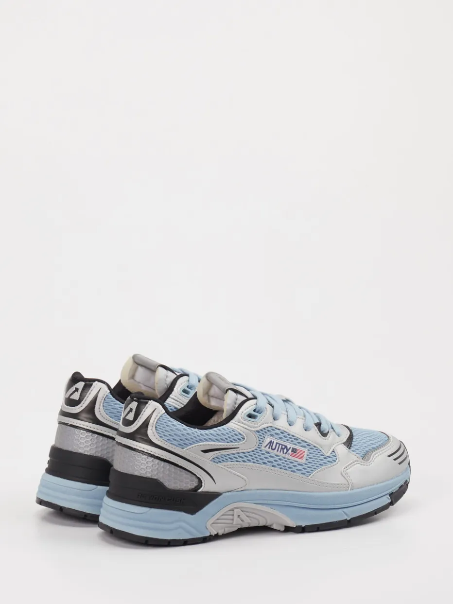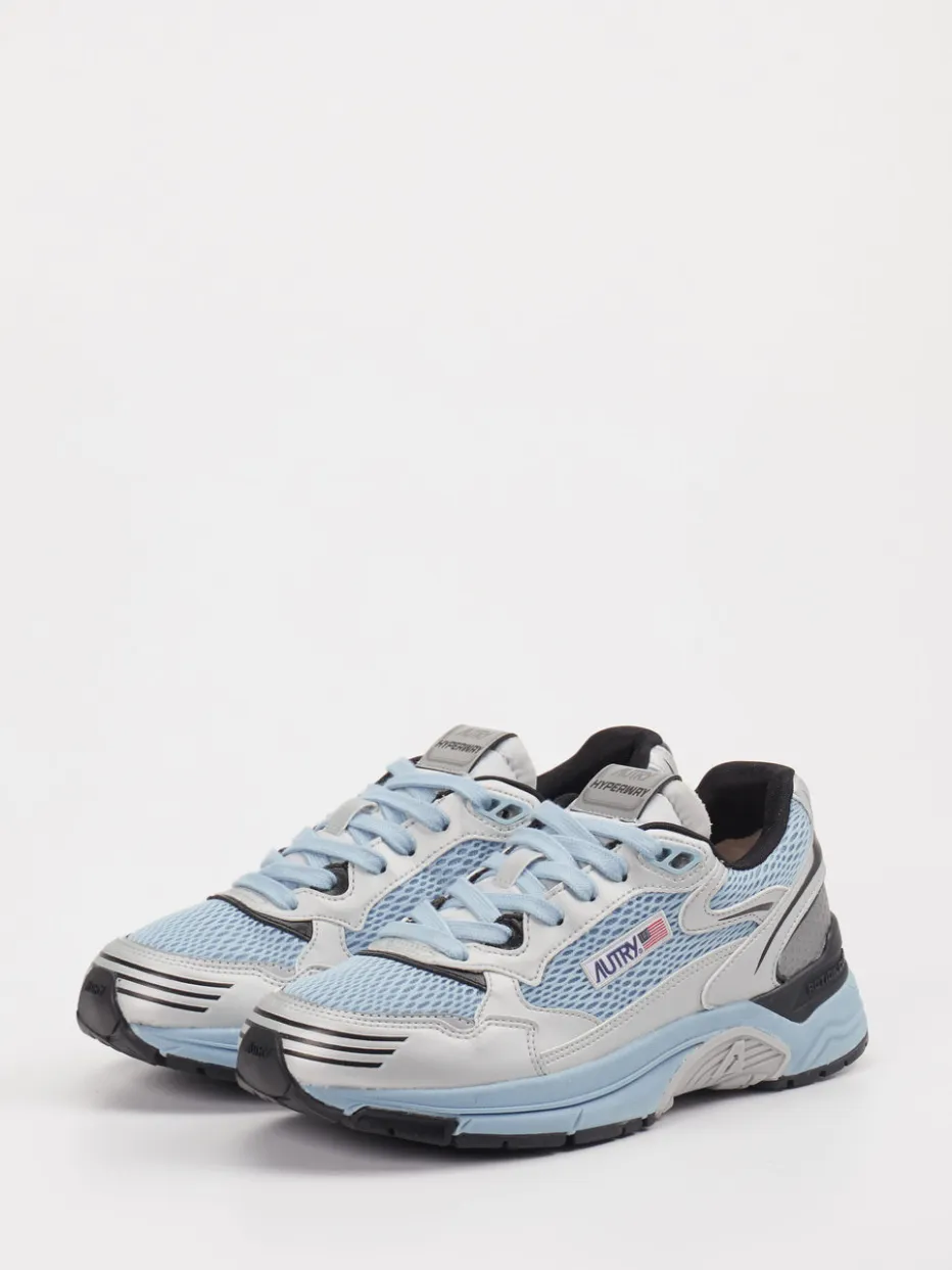 Y2K-Flair trifft Komfort. Autry interpretiert den klassischen Retro-Laufschuh modern und stilbewusst. Der sneaker Hyperway Low kombiniert ein atmungsaktives Mesh-Textil mit samtigem Velour in einem frischen Hellblau, ergänzt durch hellgraue und schwarze Akzente. Die klassisch-inspirierte Silhouette wird durch reflektierende Details an der Ferse, eine gepolsterte Action-Cush-Sohle sowie eine komfortable Schnürung funktional abgerundet. Inspiriert vom Retro-Runner-Trend der Saison, lässt sich dieser Sneaker ideal zu Techwear oder sportiven Streetwear-Looks kombinieren. Ein Style-Statement mit unverkennbarem Autry-Charakter und modernem Laufkomfort.