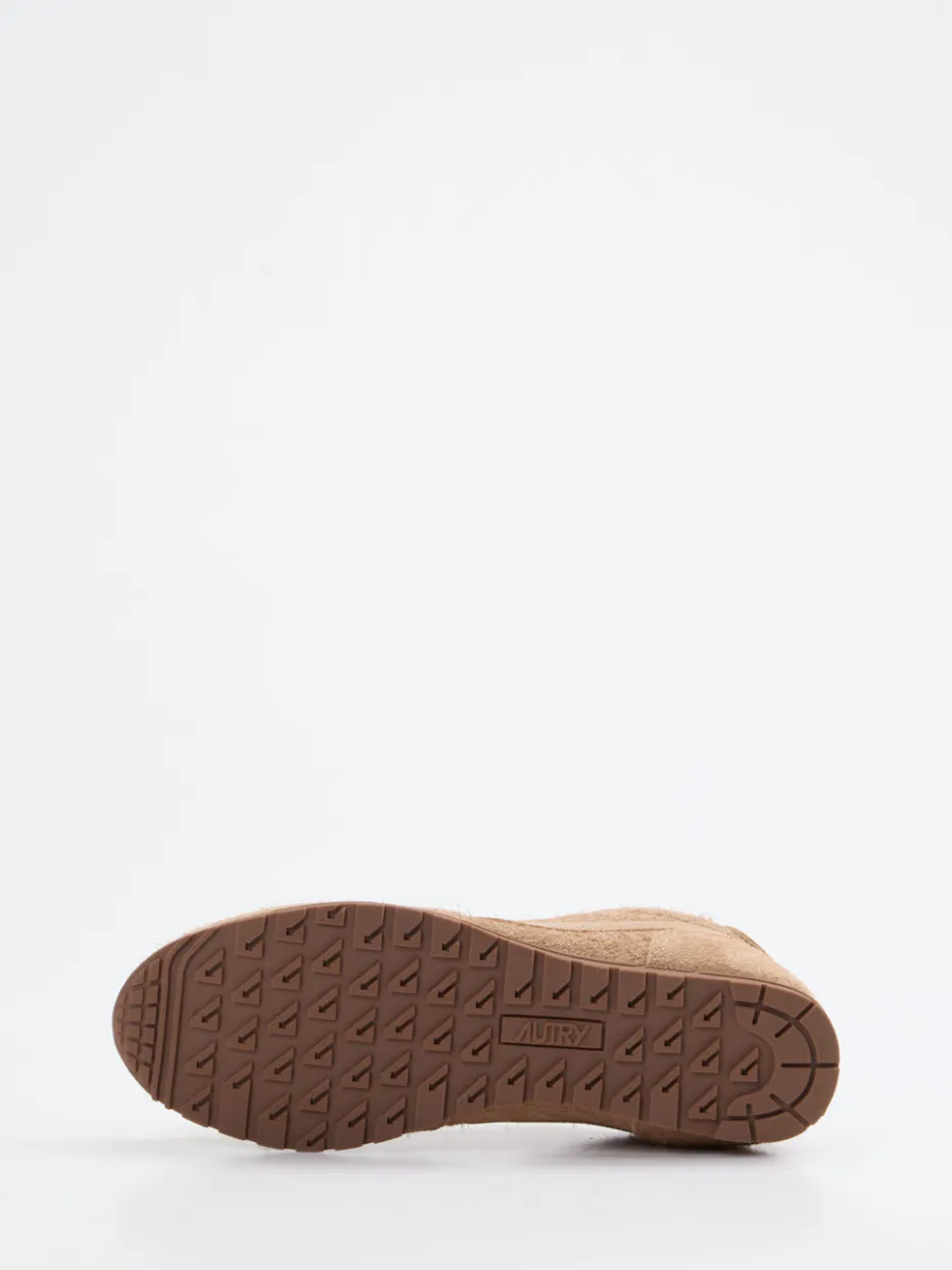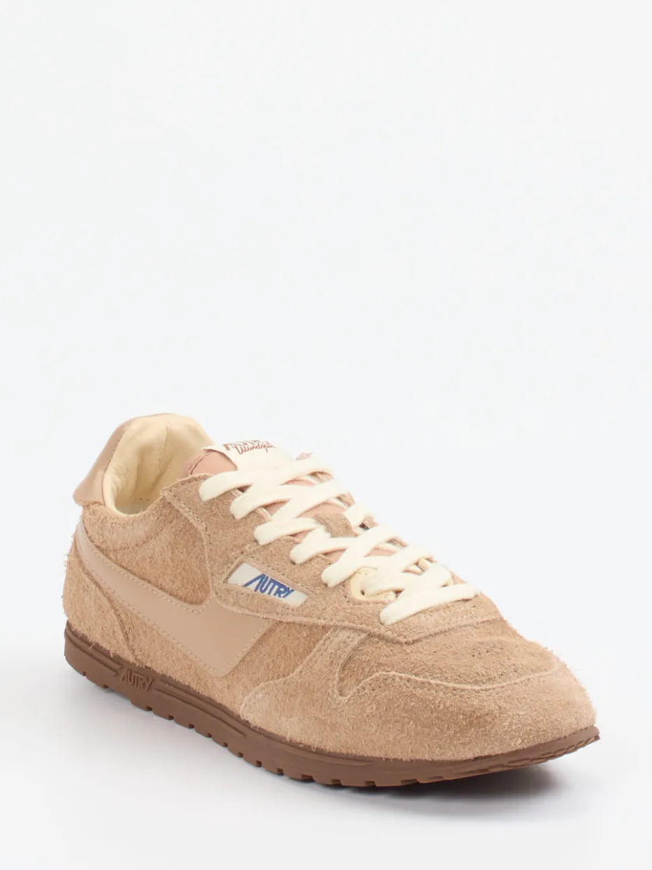 Vintage-Charme trifft moderne Lässigkeit. Die Marke Autry präsentiert mit dem Sneaker Windspin einen Retro Runner für stilbewusste Unisex-Outfits. Ob beim Stadtbummel oder im Urlaub – sein hochwertiges Veloursleder überzeugt mit rauer Oberfläche und beigebraunem Ton. Ton-in-Ton gehaltene Overlays, eine cremefarbene Kontrastsohle und die seitliche Markenprägung unterstreichen das vintage-inspirierte Design. Mit flacher Silhouette, gepolstertem Schaftrand und einer flexiblen Gummisohle bietet der Sneaker angenehmen Komfort, ergänzt durch ein atmungsaktives Futter und ein herausnehmbares Fußbett. Ideal für entspannte Streetwear-Looks oder dezente Quiet-Luxury-Styles. Ein Modell mit urbanem Charakter und sorgfältiger Materialästhetik.