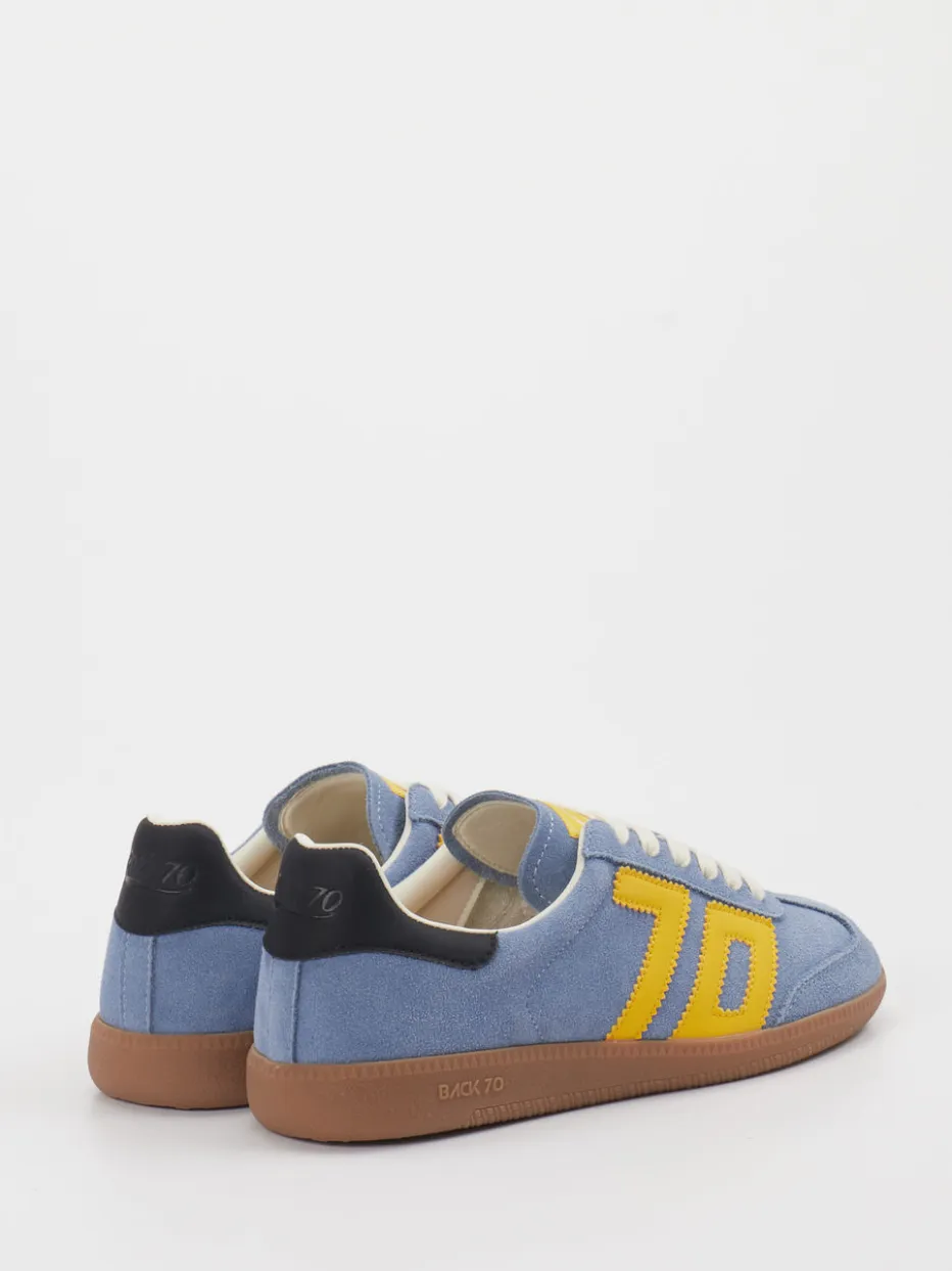 Trendfarbe trifft Vintage-Flair. Back 70 präsentiert mit diesem Retro-Sneaker ein ausdrucksstarkes Damenmodell im Stil der 90er. Ideal für urbane Freizeitlooks oder sportlich-entspannte Outfits: Das jeansblaue Modell überzeugt mit weichem Veloursleder, gelber Applikation und einer flach geschnittenen Silhouette. Textilelemente im Inneren sorgen für angenehmen Tragekomfort, während die profilierte Gummisohle zuverlässige Bodenhaftung garantiert. Der Colour-Blocking-Look wirkt modern und auffällig, ohne an Authentizität zu verlieren. Eine Schnürung rundet das Design funktional ab. Ein unisex-tauglicher Eyecatcher mit Streetstyle-Attitüde – typisch Back 70.