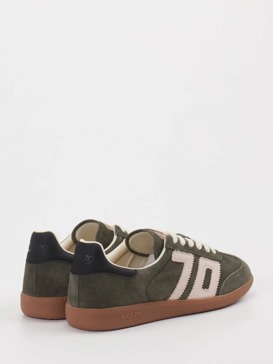 Vielseitiger Look mit Vintage-Charme. Back 70 steht für Retro-Sneaker mit Charakter. Dieses Unisex-Modell greift die Ästhetik der 70er-Jahre auf und bringt sie in die Gegenwart. Ideal für entspannte Alltagssituationen, punktet der flach geschnittene Sneaker mit hochwertigem Veloursleder in Olivgrün und mattierter Oberfläche. Cremeweiße Schnürsenkel, ein kontrastierendes rosa Logo und Ton-in-Ton-Nähte akzentuieren das Design. Die strapazierfähige Gummisohle und das weiche Textilfutter sorgen für Komfort. Stilistisch beeinflusst von Streetwear und dem Retro Sneaker Revival, lässt sich das Modell hervorragend mit Jogginghose oder Jeans kombinieren. Ein authentischer Klassiker mit moderner Vielseitigkeit.