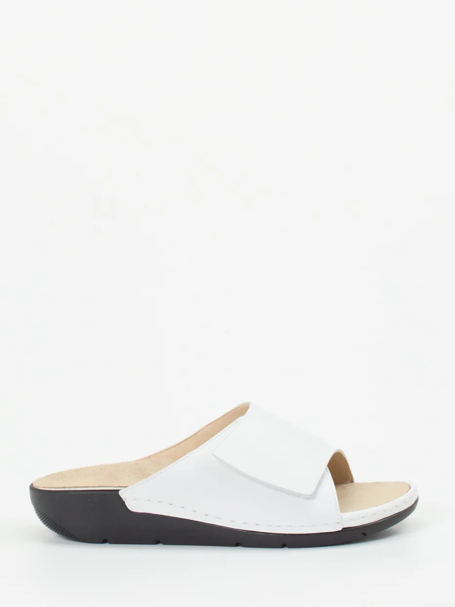 Schlicht. Komfortabel. Alltagstauglich.Die Damen-Pantolette von Berkemann vereint reduziertes Design mit durchdachter Funktionalität. Ideal für entspannte Sommertage zu Hause oder unterwegs bietet das Modell aus weißem Kalbleder mit glänzender Oberfläche eine ergonomische Passform. Der breite Riemen mit Klettverschluss ermöglicht eine individuelle Weiteneinstellung. Ein Highlight: Die gepolsterte, waschbare Innensohle lässt sich bei Bedarf gegen eigene Einlagen tauschen. Die Keilsohle mit Profil sorgt für sicheren Stand und ein angenehmes Laufgefühl. Sichtbare Kontrastnähte unterstreichen den hochwertigen Look mit minimalistischem Charakter. Beratungskomfort mit Fokus auf Langlebigkeit und Wohlbefinden – das ist Berkemann.