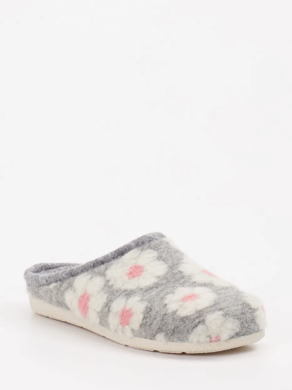 Diese weichen Filzpantoffeln vereinen gemütlichen Tragekomfort mit floralen Details und einer rutschhemmenden Sohle – ideal für entspannte Tage zu Hause.