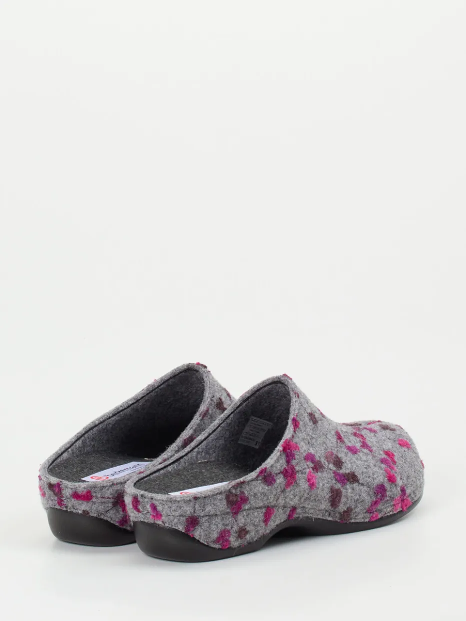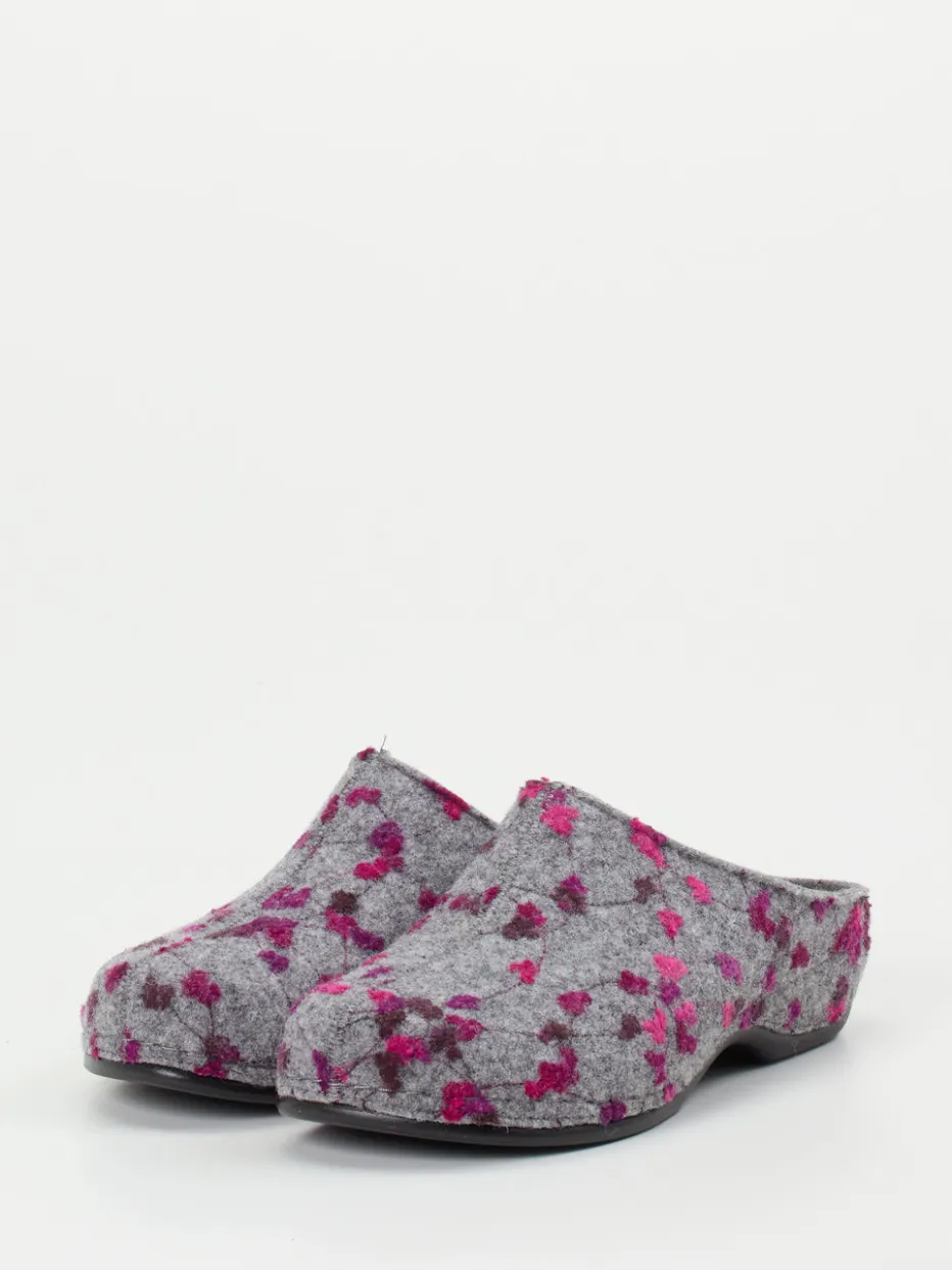Die Pantoletten von Berkemann vereinen ergonomischen Komfort mit stilvollem Design. Filz in melierter Optik und floralen Details sorgt für gemütliche Stunden zu Hause.