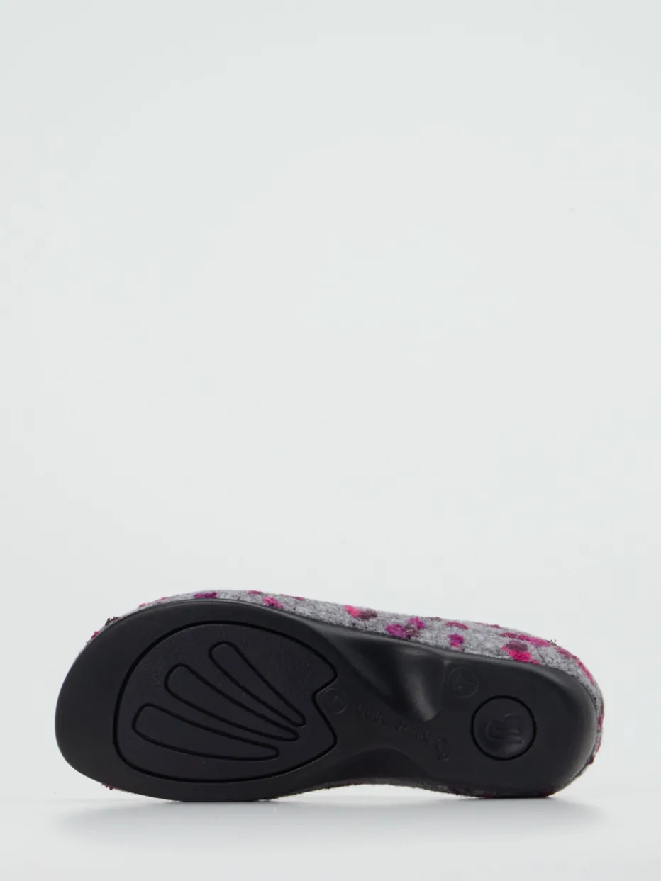 Floraler Hausschuhkomfort für den Winter.Berkemann interpretiert die klassische Damen-Pantolette neu. Ideal für entspannte Momente daheim bieten diese Hausschuhe aus grauem Wollfilz mit samtig-filziger Textur und violetten Blumenakzenten wohltuende Wärme. Die ergonomisch geformte Gummisohle stützt das Fußgewölbe, während das gepolsterte Fußbett für spürbare Entlastung sorgt. Die offene Fersenpartie in Clog-Form kombiniert mit der rutschhemmenden Laufsohle garantiert Alltagstauglichkeit auf wohnlichen Böden. Der skandinavisch inspirierte Cottagecore-Charakter macht sie zu einem Highlight winterlicher Loungewear. Wohlfühlqualität mit funktionalem Design aus dem Hause Berkemann.