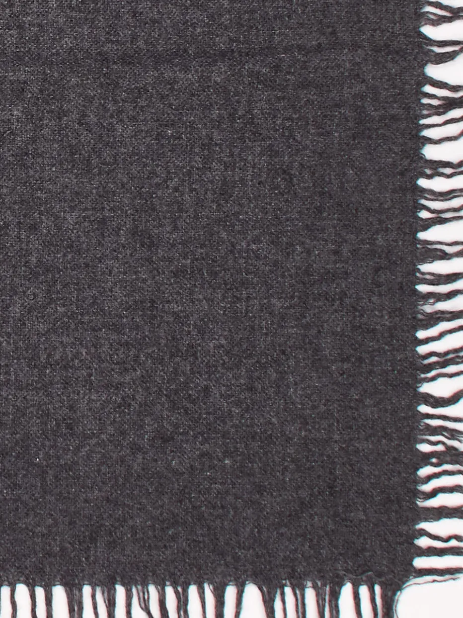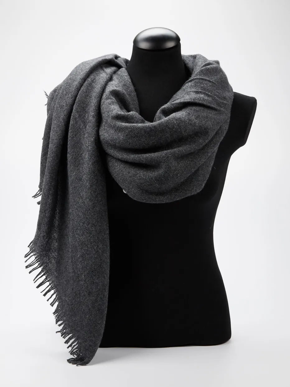 Mit diesem quadratischen Tuch der italienischen Marke Blui machen Sie alles richtig! Das dunkelgraue Material aus Wolle mit Kaschmir-Anteil ist wunderbar weich und wärmend. Die Fransen verleihen dem vielfältigen Allrounder das gewisse Etwas. – Material: 80 % Wolle, 20 % Kaschmir – Farbe: dunkelgrau – Maße: ca. 150 x 150 cm – Pflegehinweise: Handwäsche