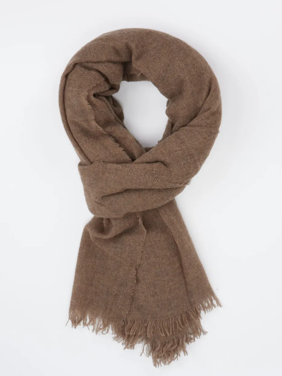 Mit seiner fließend weichen Struktur und dem edlen Braunton steht dieser Schal von Blui exemplarisch für modernen Minimalismus in luxuriöser Ausführung.