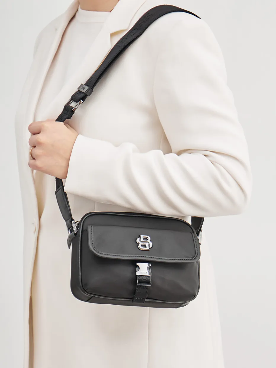 Schwarz trifft auf Struktur: Die Boss Crossbody Bag kombiniert minimalistischen Stil mit funktionalem Design – perfekt für urbane Alltagslooks.