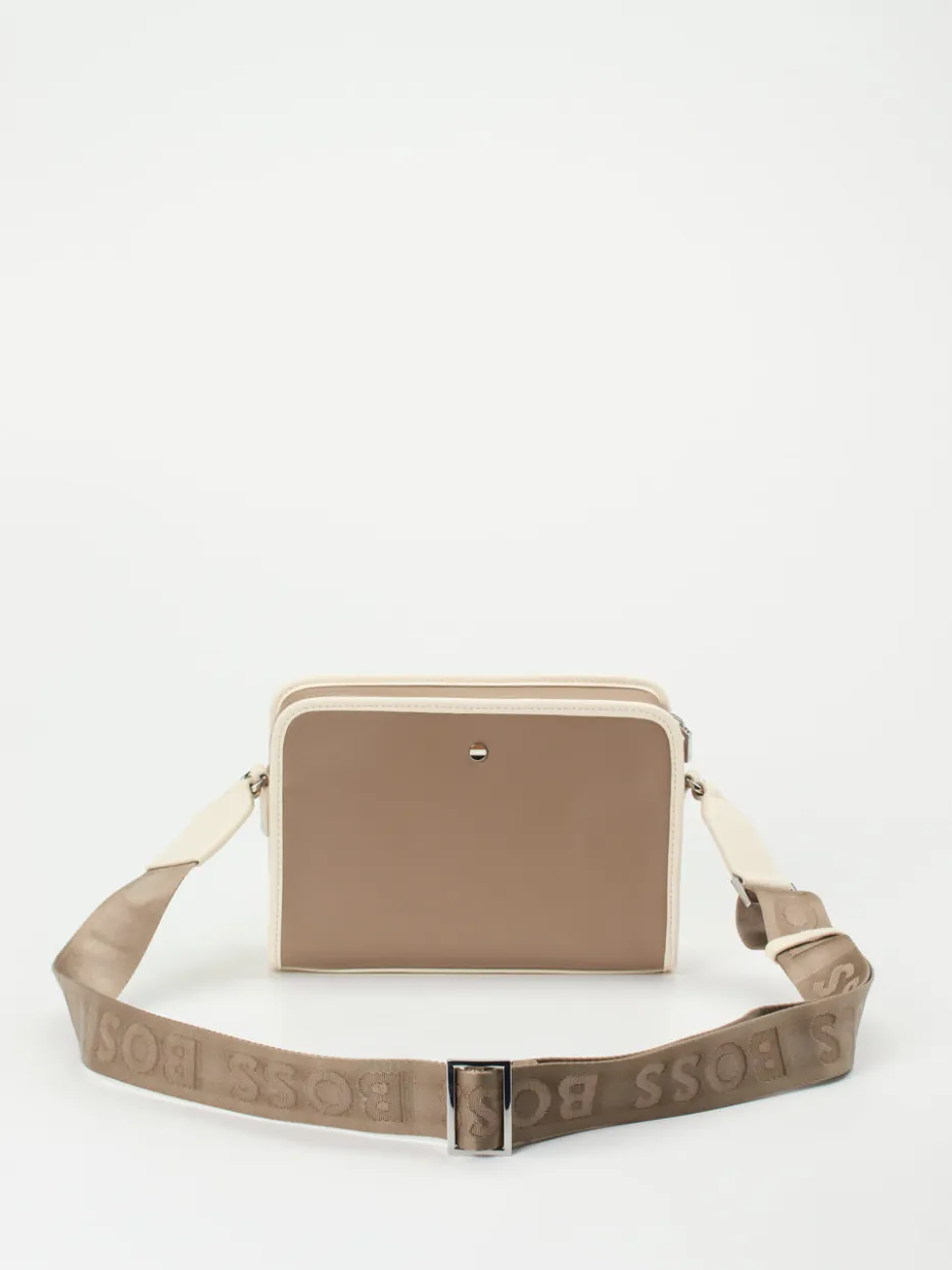 Die kompakte Crossbody-Bag von Boss vereint edles Kalbleder in Taupe mit minimalistischem Design und funktionalen Details – ein stilvoller Begleiter für urbane Looks.