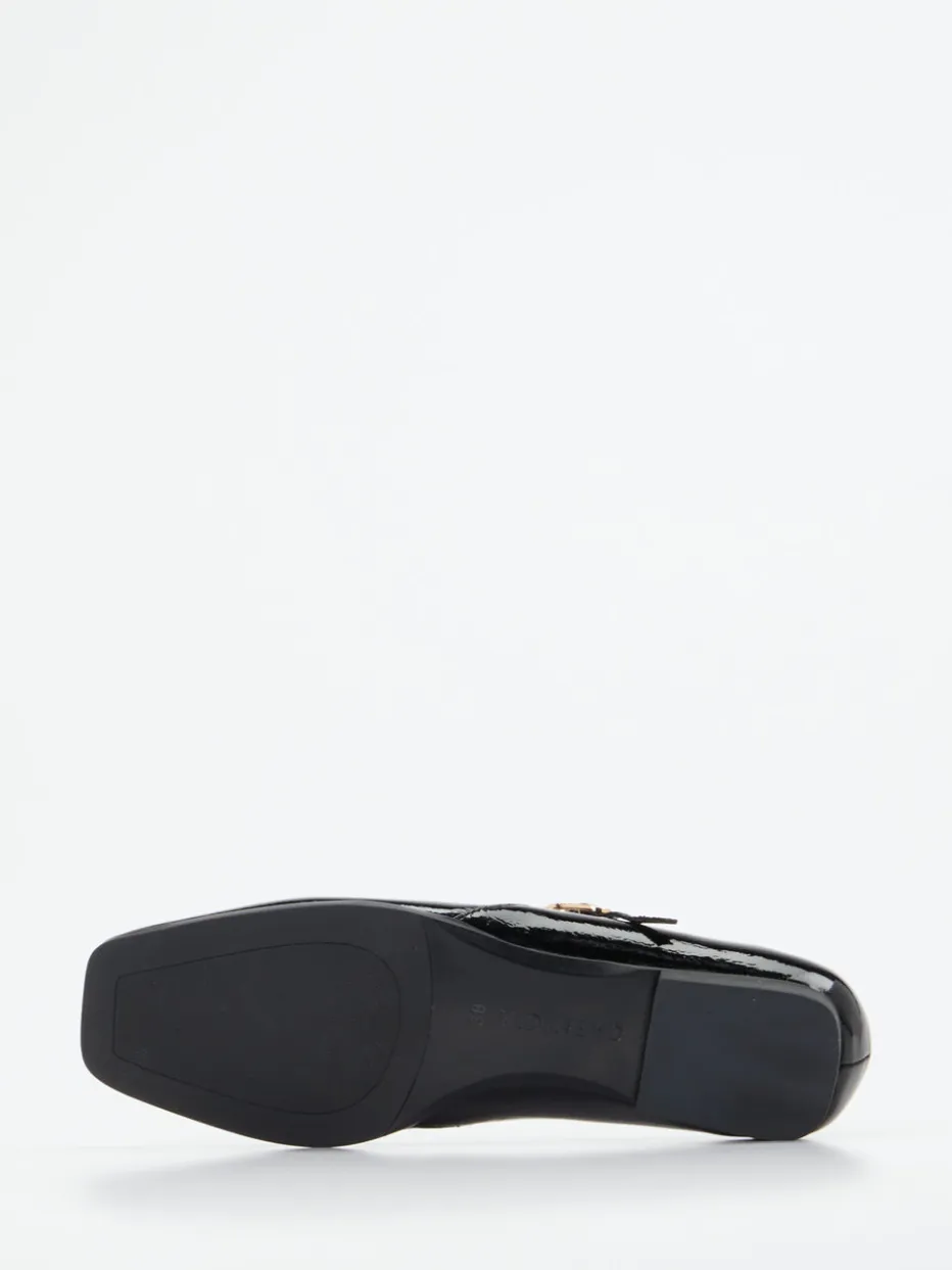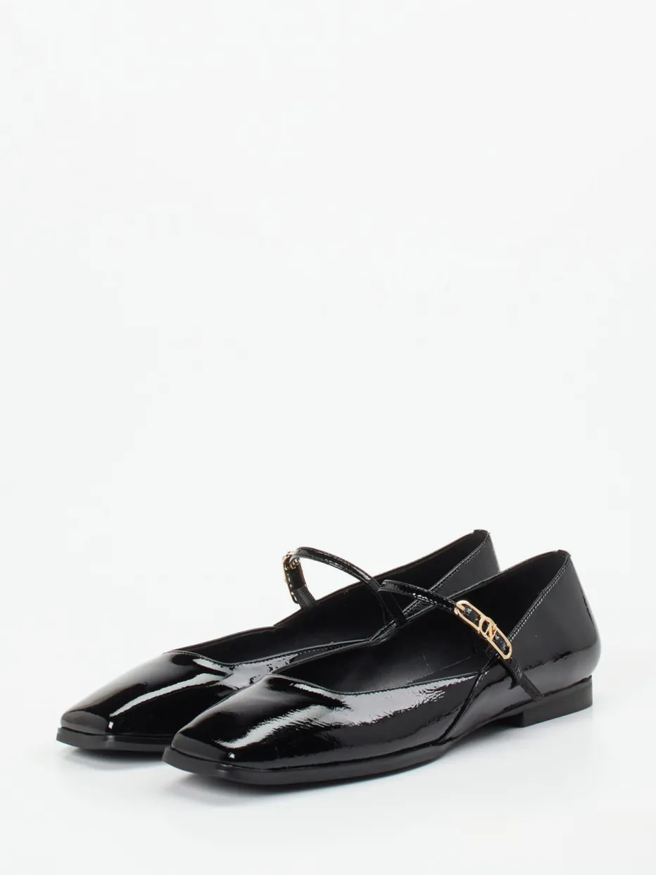 CAFèNOIR interpretiert klassische Mary Jane Ballerinas neu – in einer schwarzen Lackledervariante mit femininer Note.
