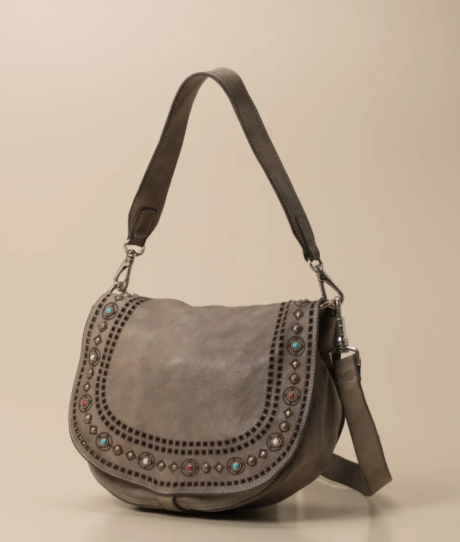Italienisches Kalbleder und ornamentale Verzierung verleihen dieser Satteltasche einen markanten Boho-Charakter mit Vintage-Flair. Durchdachte Details machen sie zum stilvollen Dauerbegleiter.