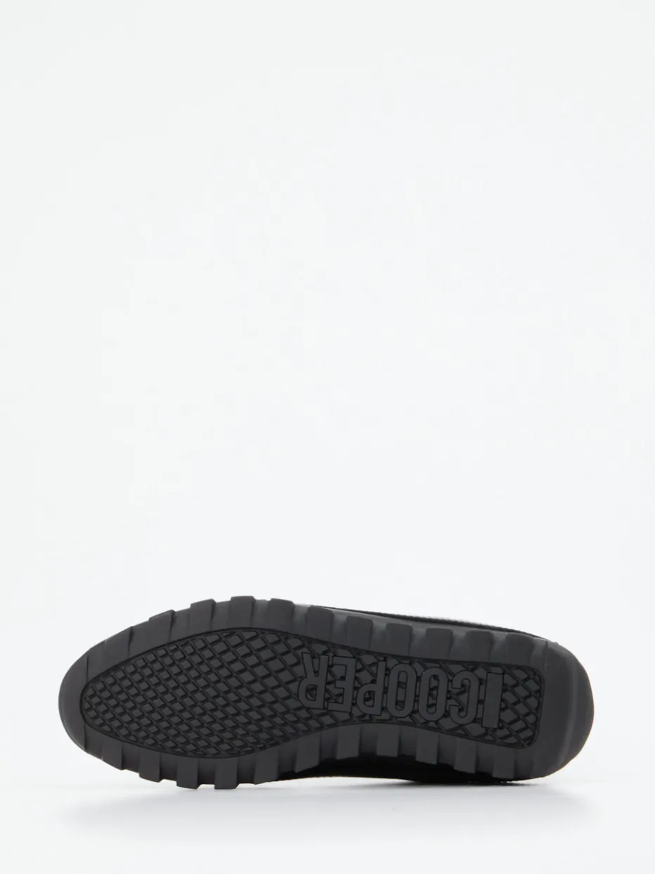 Stilvoll durch den Winter.Die Marke Candice Cooper präsentiert hier elegante Schnürboots für Damen mit sportlich-kompaktem High-Top-Design. Ob für den Stadtbummel oder den Weg ins Atelier: Das tiefschwarze Kalbleder zeigt sich mit matter Oberfläche und wird durch eine Ton-in-Ton-Logoprägung sowie einen dezenten Markenprint ergänzt. Innen schützt ein hochwertiges Lammfellfutter zuverlässig vor Kälte. Die Kombination von Schnürung und seitlichem Reißverschluss ermöglicht bequemes Anziehen. Eine robuste Gummiprofilsohle verleiht Trittsicherheit, auch bei winterlichen Bedingungen. Trendig inszeniert im Stil der Urban Utility FW24. Mit herausnehmbarem Fußbett und klarer Linienführung verspricht dieser Schuh Komfort und minimalistische Raffinesse.