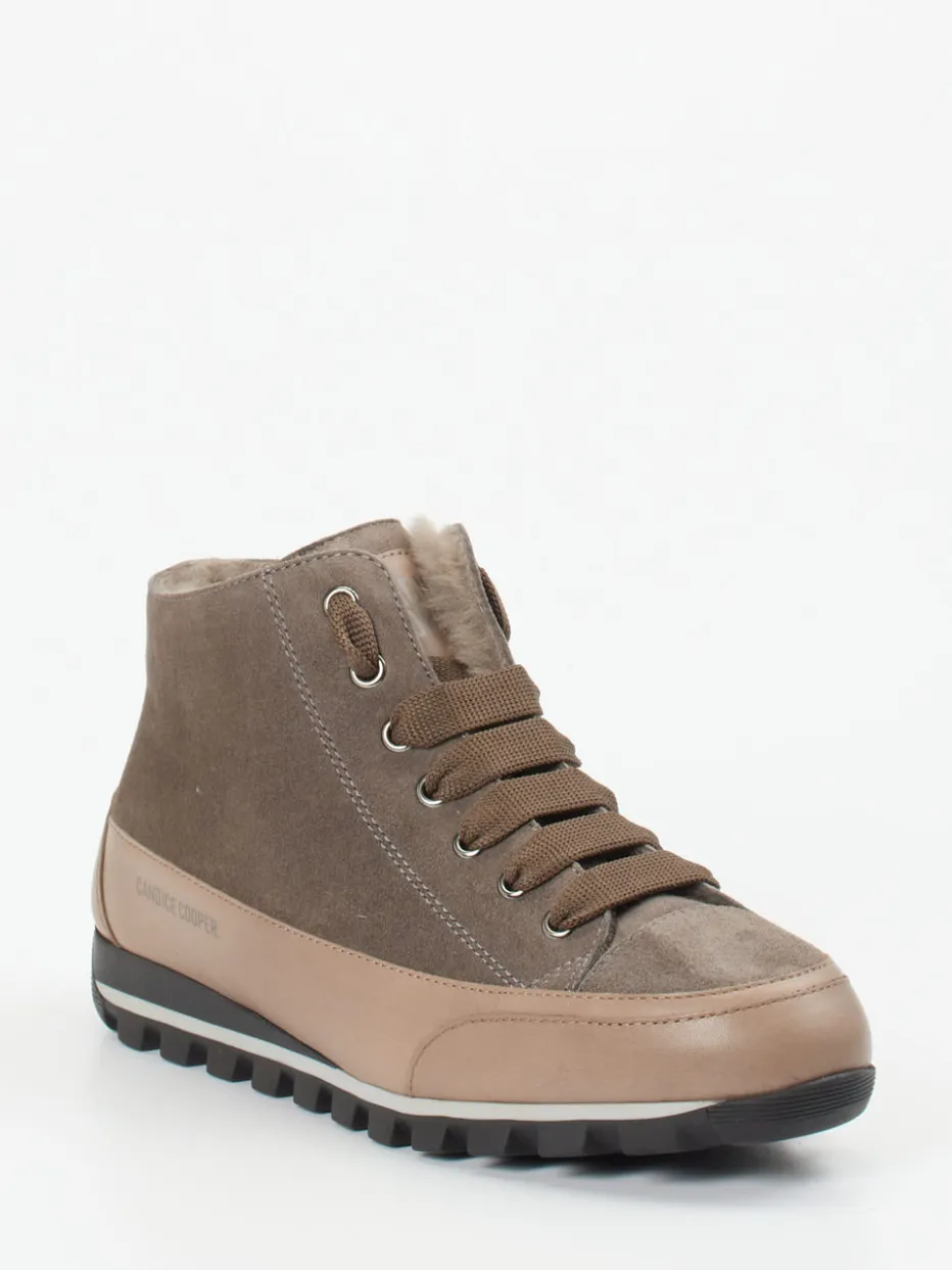 Wärmender Begleiter mit urbanem Anspruch.Die Marke Candice Cooper präsentiert eine knöchelhohe Schnürstiefelette für Damen. Perfekt für Herbsttage und mildere Winterspaziergänge: Hochwertiges Nubukleder mit samtig angeschliffener, genarbter Oberfläche in taupefarbenem Ton trifft auf ein kuscheliges Innenfutter aus natürlichem Lammfell. Die cleane Silhouette zeigt eine rund zulaufende Form mit tonal abgestimmten Nähten, seitlichem Markenprint und funktionalem Reißverschluss plus Schnürung. Eine profilierte Gummisohle sorgt für Trittsicherheit, während Polsterungen und Wechselfußbett zusätzlichen Komfort bieten. Stilistisch passt das Modell zum „Quiet Luxury“-Trend mit Outdoor-Akzent. Ein stilvoller Alltagsboot mit funktionalem Komfort und nordischem Understatement.