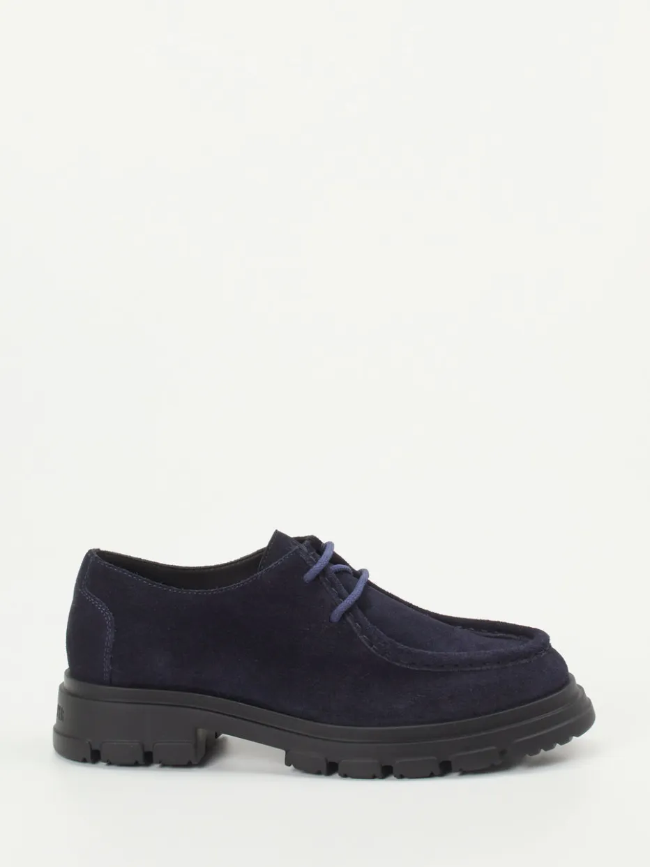 Urbaner Komfort mit Eleganz.Candice Cooper zeigt mit diesem Schnürschuh seine Kompetenz in Design und Materialverarbeitung. Ideal für lange Tage im Büro oder in der Stadt: Das samtig-nachtblaue Veloursleder verleiht dem Schuh eine ruhige Tiefe, während Mokassinnaht und tonige Schnürung klassische Handwerksästhetik zitieren. Der Komfort überzeugt dank vollständigem Kalblederfutter und gepolstertem Fußbett, die profilierte Chunky-Sohle unterstreicht den Streetwear-Charakter. Dank minimalistischer Linienführung und matter Oberfläche lässt sich das Modell vielfältig kombinieren – etwa mit Strick und Chino. Candice Cooper verbindet hochwertige Materialien mit urbanem Stilgefühl und Komfort.