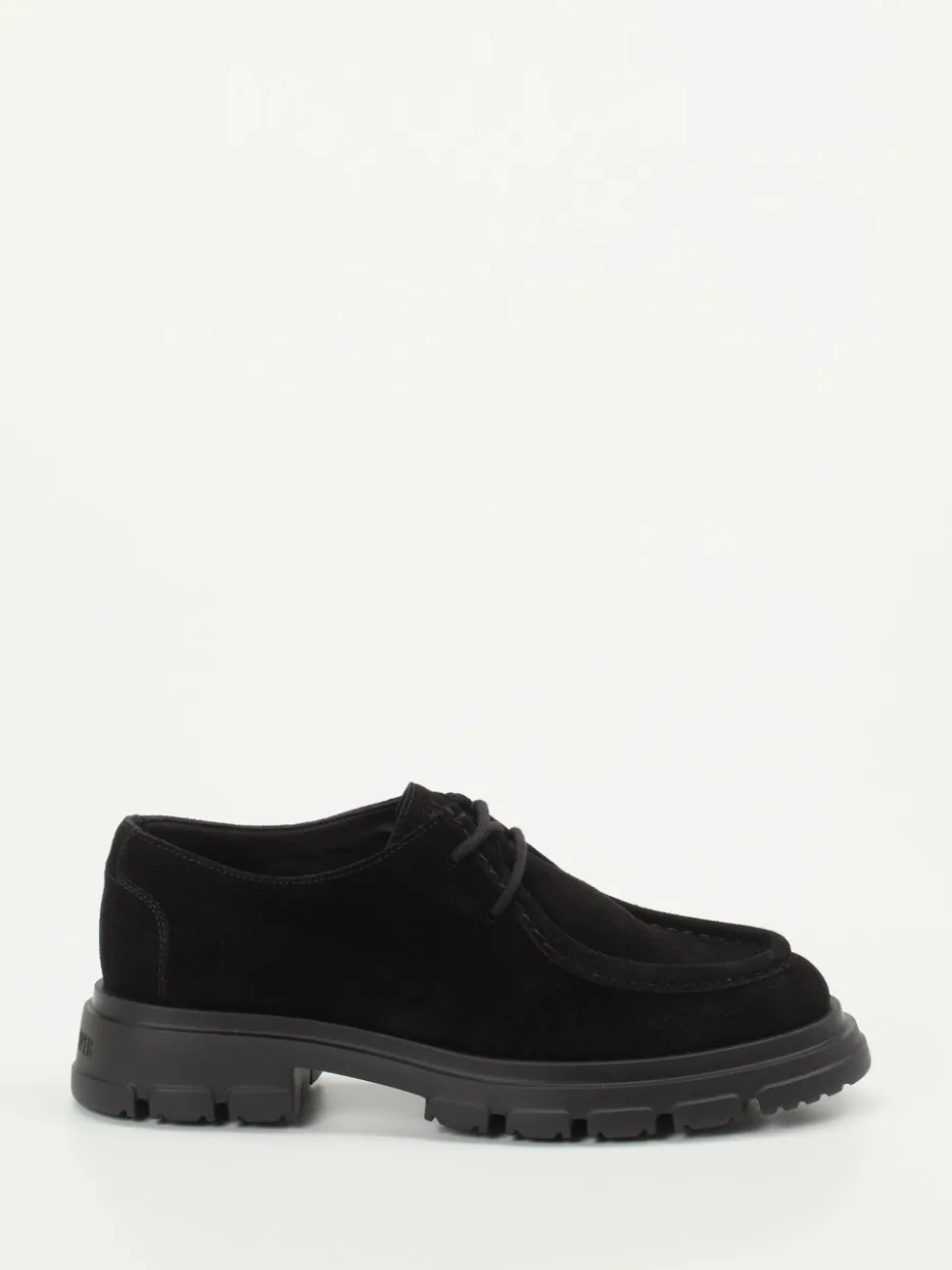 Der kompakte Schnürschuh verbindet hochwertiges Veloursleder mit markanter Profilsohle und passt ideal in urbane und minimalistische Looks.