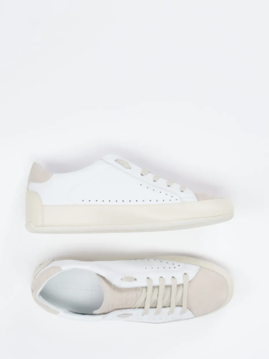 Zurückhaltender Luxus für jeden Tag.Candice Cooper präsentiert einen Sneaker aus feinem Kalbleder mit filigranem Farbspiel in Beige, Weiß und Sand. Dieser flach geschnittene Low-Top verbindet butterweiches, teils perforiertes Glattleder mit samtig-texturiertem Veloursleder im Kontrastbereich. Die klassische Schnürung, Ton-in-Ton-Nähte und dezentes Branding auf Zunge sowie Ferse unterstreichen den minimalistischen Stil. Die flexible Gummisohle und die gepolsterte Ferse sorgen für ein dauerhaft angenehmes Tragegefühl. Ein Modell, das dem Trend „Quiet Luxury“ folgt und sich besonders harmonisch zu Sandtönen oder hellen Naturfarben kombinieren lässt. Ein zeitloser Alltagsbegleiter mit Liebe zum Understatement.